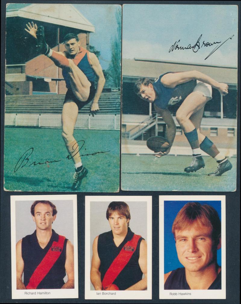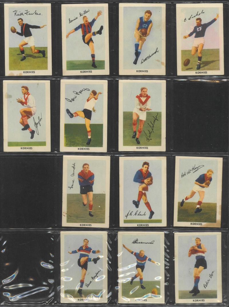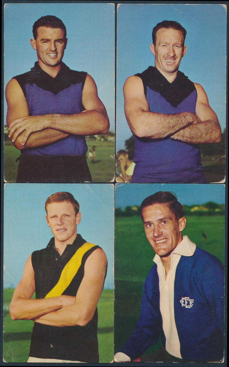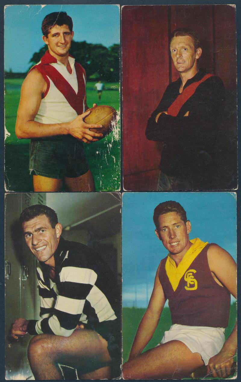 [47/64]; 1970 Scanlens mini-posters [2/12]; 1998 Hawks Forever 'Hawthorn Captains' [15]; 1998 Brusseze 'Bomber Legends' [10 + Title Card]; 1998 Brusseze 'Footscray Legends' [15 + Title Card], mainly Fine/Very Fine.