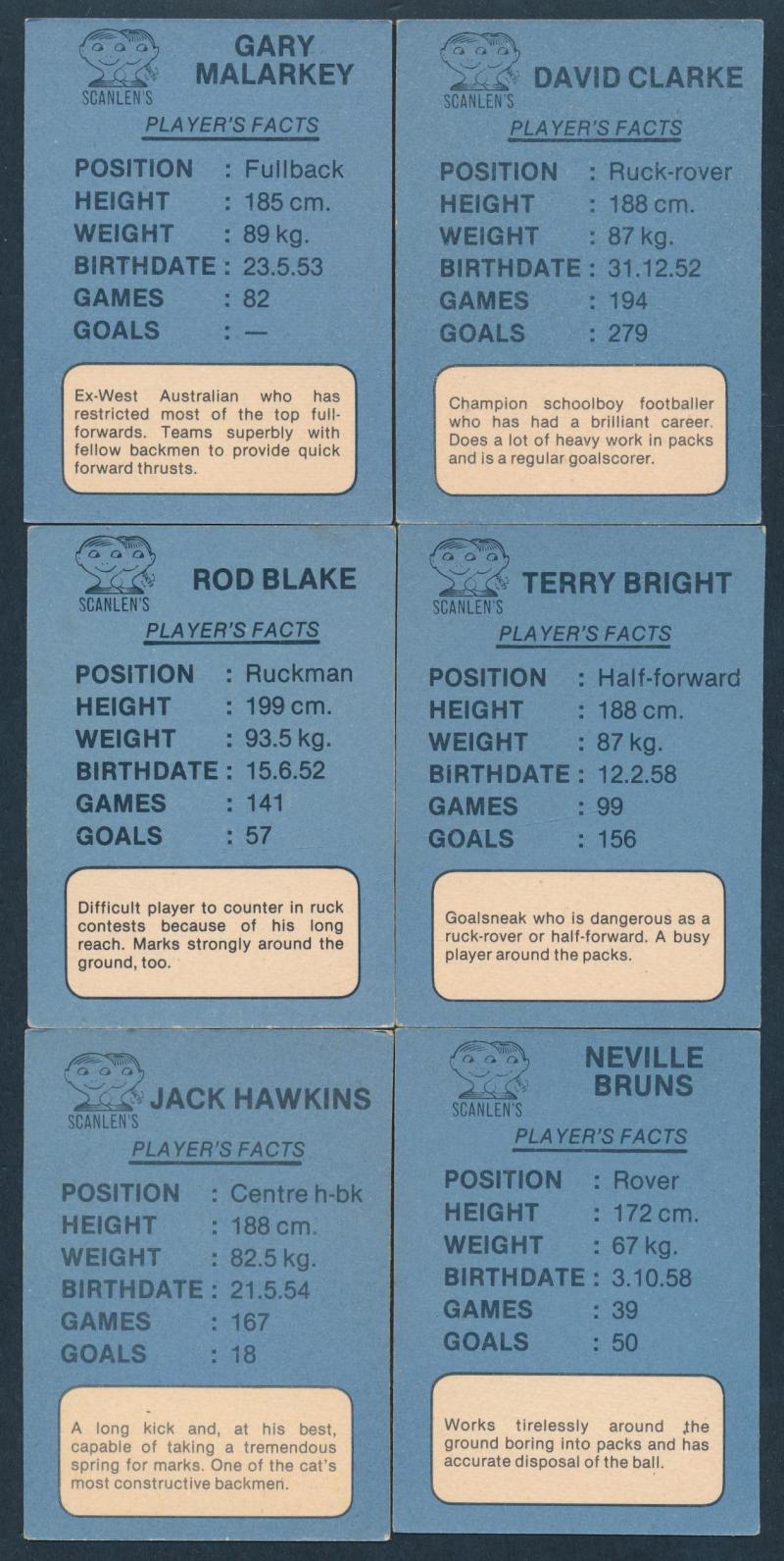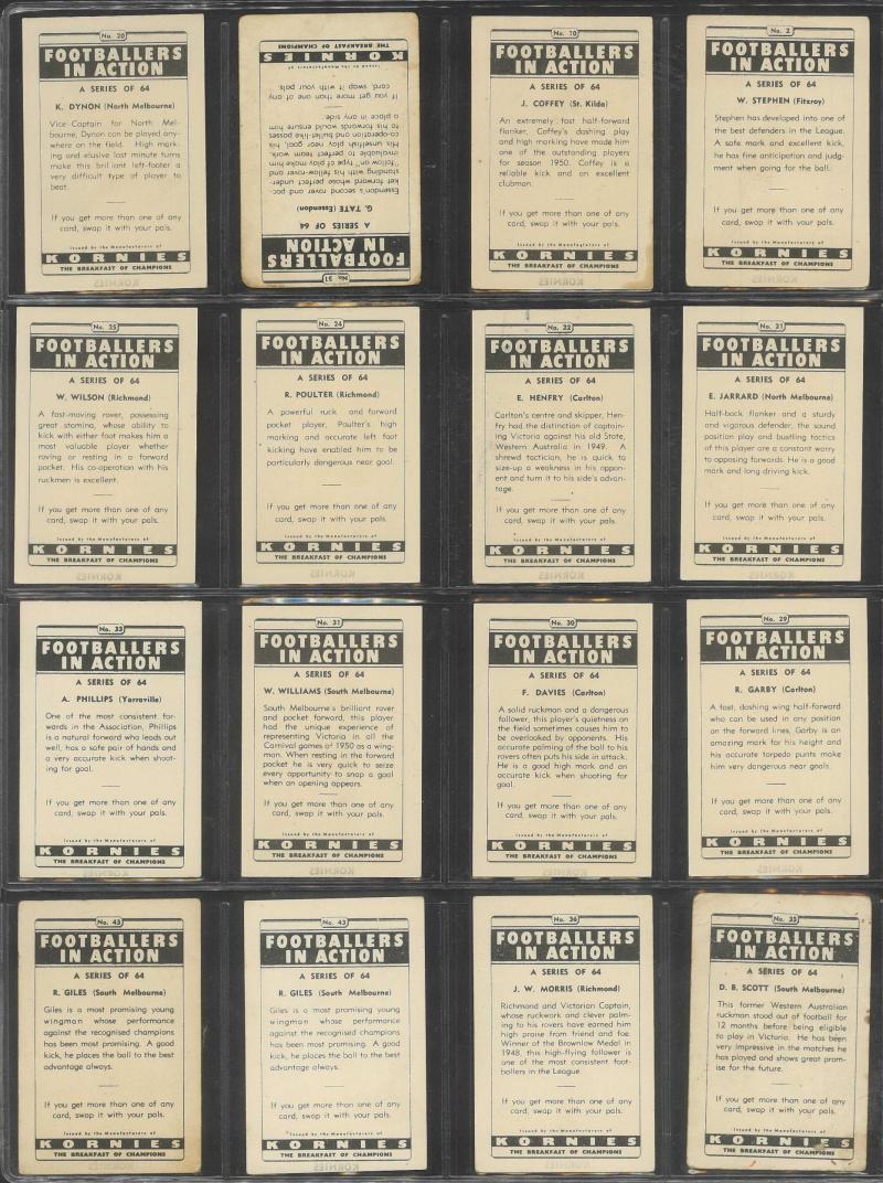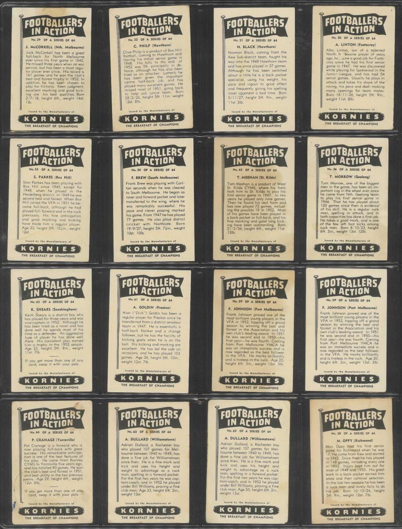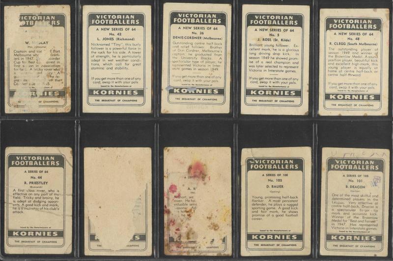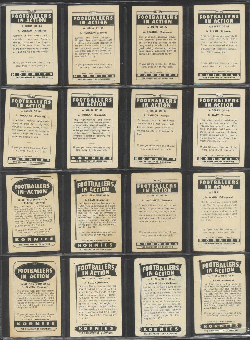 (11), 1965 (10), 1967 (8) & 1968 (8); 1974 Dinkum Pies (10); 1995 'All Australian' [21], mainly Poor/Fine. (Image1) (Image2)