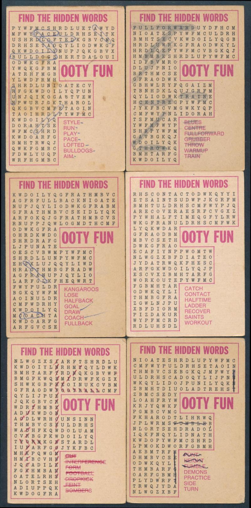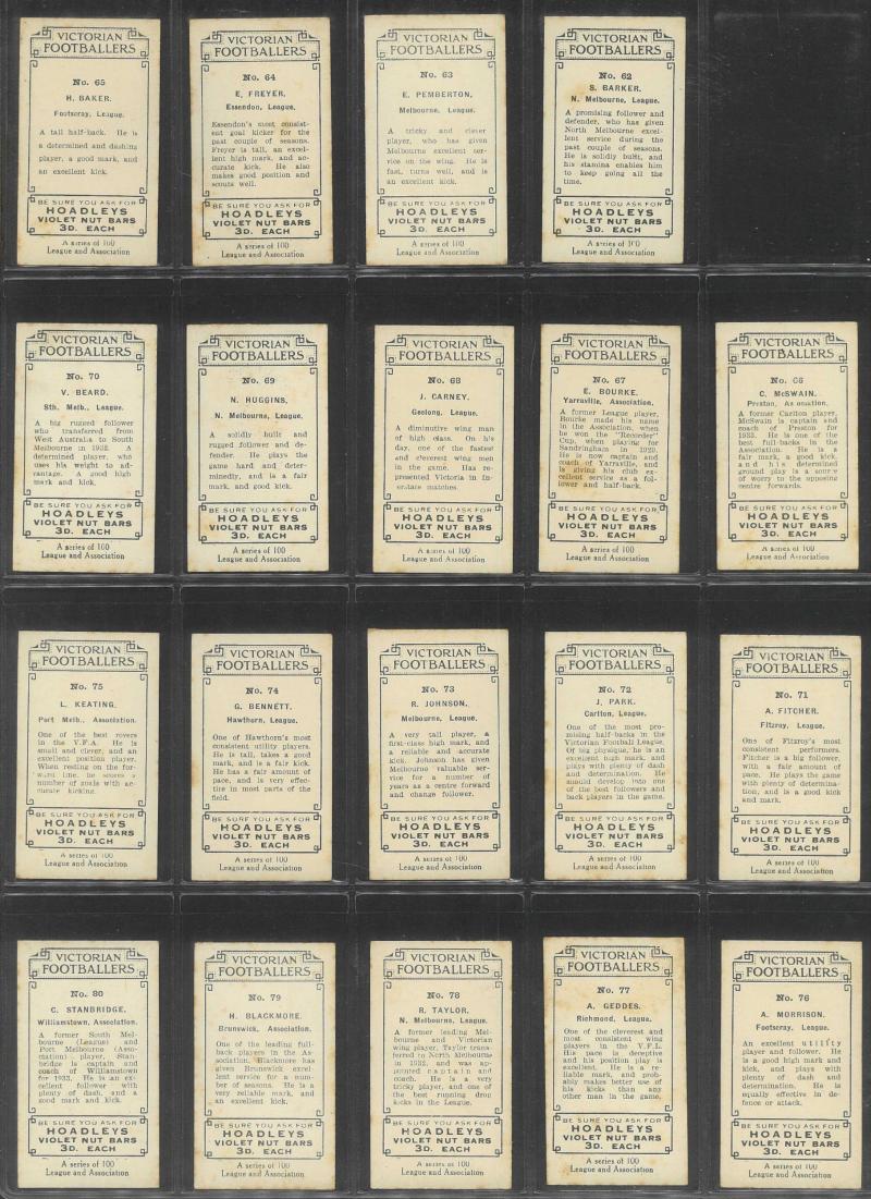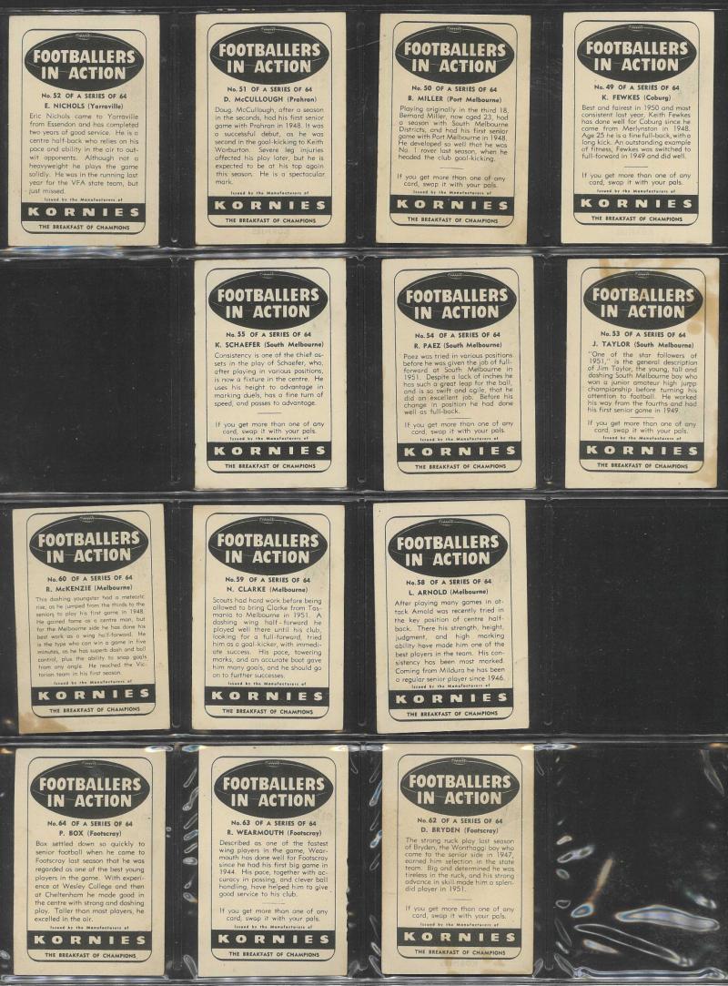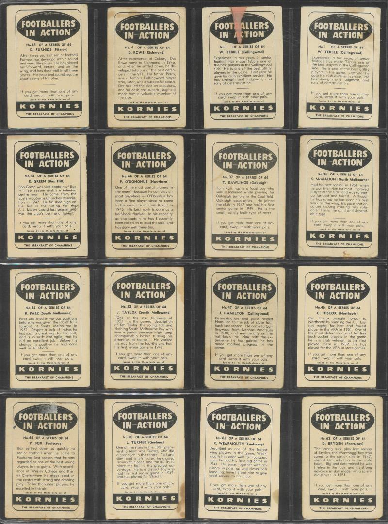 (11), 1965 (10), 1967 (8) & 1968 (8); 1974 Dinkum Pies (10); 1995 'All Australian' [21], mainly Poor/Fine. (Image1) (Image2)
