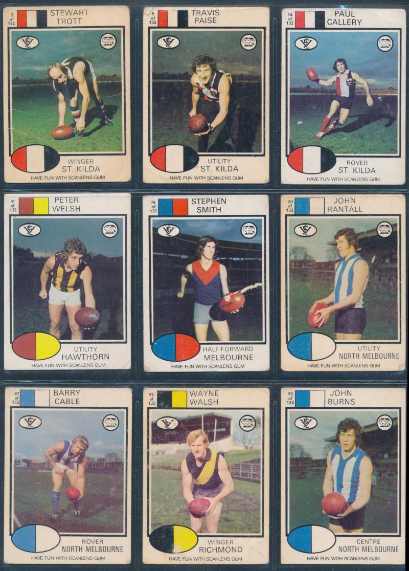 Footballers (4); Scanlens 1976 (37), 1977 (27), 1989 (55) & 1990 (8); plus some non-football cigarette & trade cards, mainly Fair/Fine.
