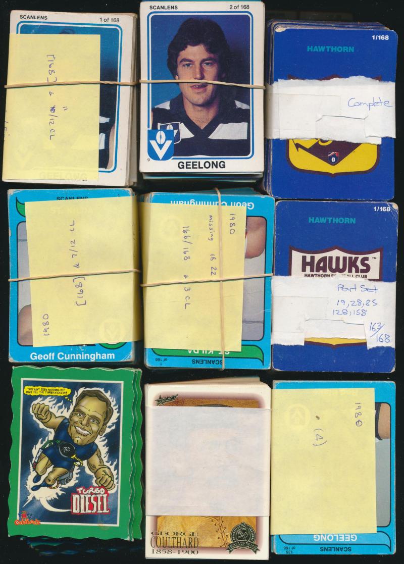 Collection 1978-90 Scanlens cards, comprising 1978 [148/156]; 1980 [168] & Checklists [12]; 1981 [168] & Checklists [12]; 1982