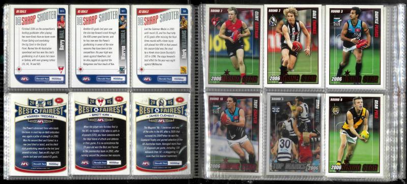 Collection 1994-98 cards in 5 albums, noted 1994 Dynamic 'Acetate MVP All Stars' [5]; 1995 Select 'All Australian Team' [22] &