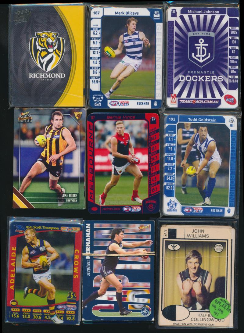 Collection 1979-2021 range including 1979 Tip Top Bread 'VFL Footy All-Stars' [4/12]; 1999 Pigskin Promotions 'Melbourne