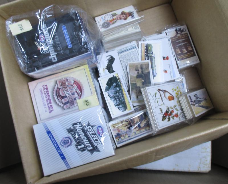 mainly modern cards; factory boxes (12); micro-figures; 1930s cigarette cards (1000 approx); few albums of animal cards; 12 cartons of empty albums, mainly Fair/Very Fine.