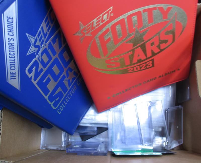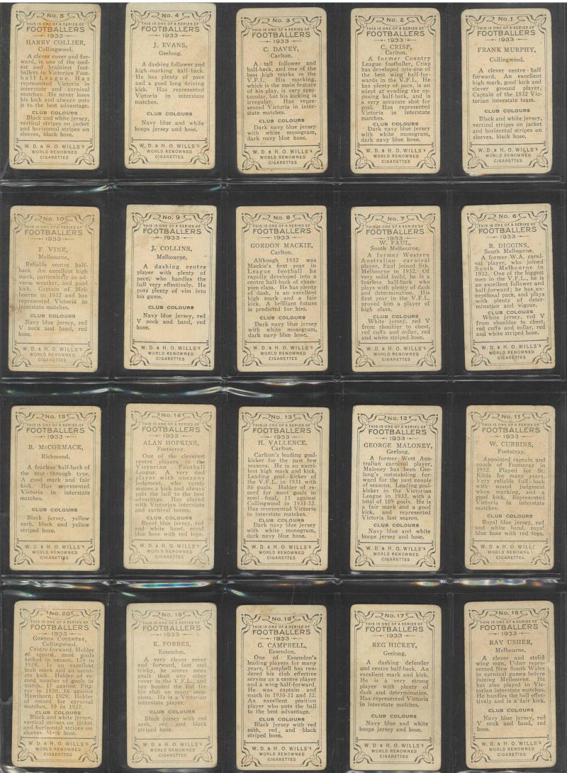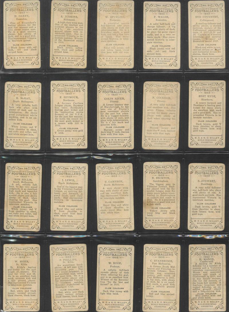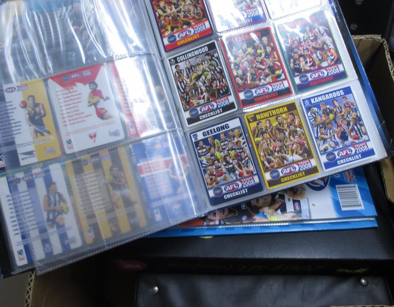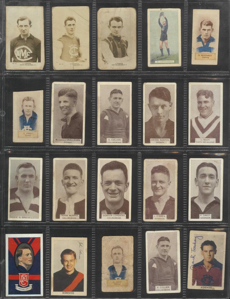 Balance of collection including 1933 Wills 'Footballers 1933' [200]; 1965 Mobil 'VFL Footy Photos' [40]; count boxes & cartons of