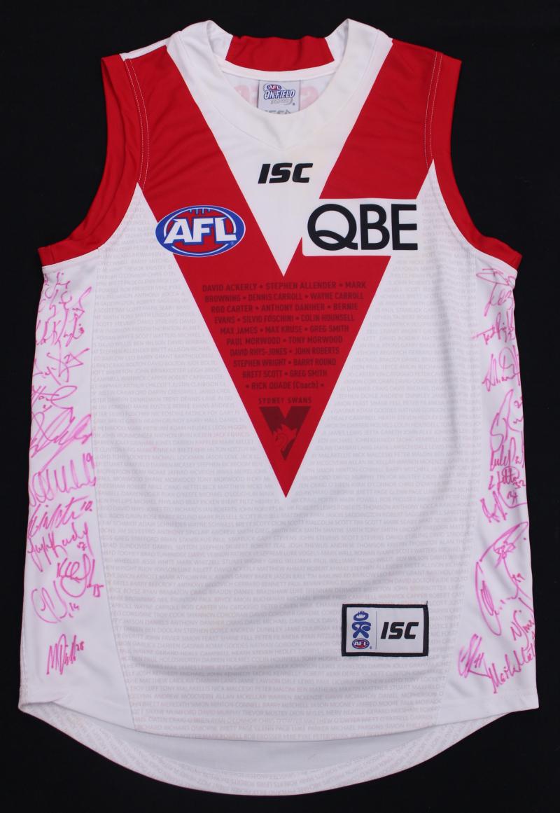 SYDNEY SWANS: 2012 Heritage jumper with 24 signatures of Premiership team including Adam Goodes, Josh Kennedy & Ryan O'Keefe. [The
