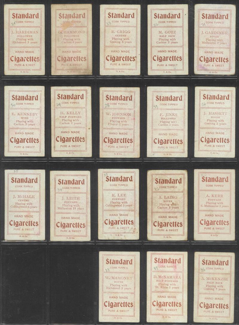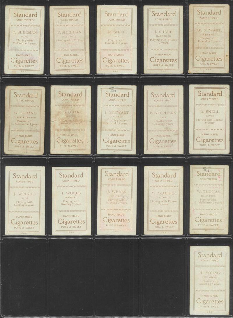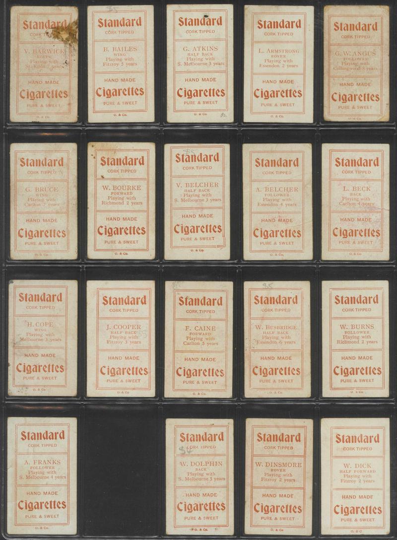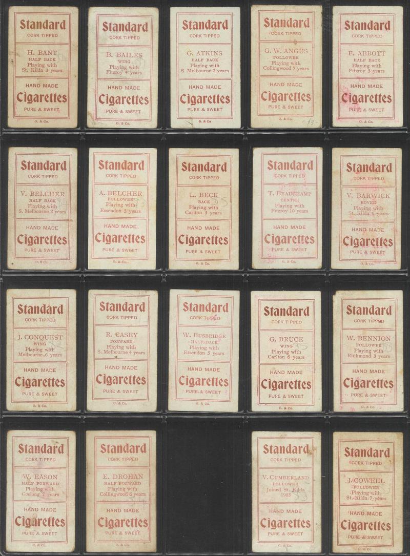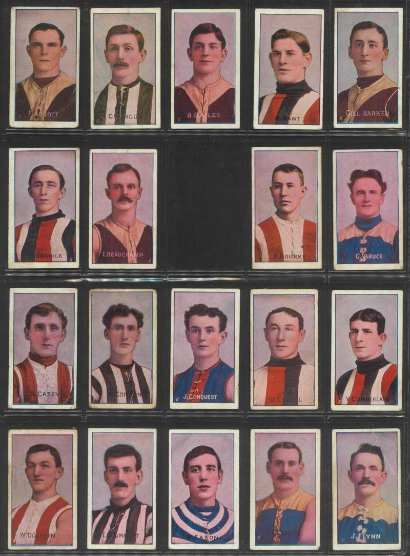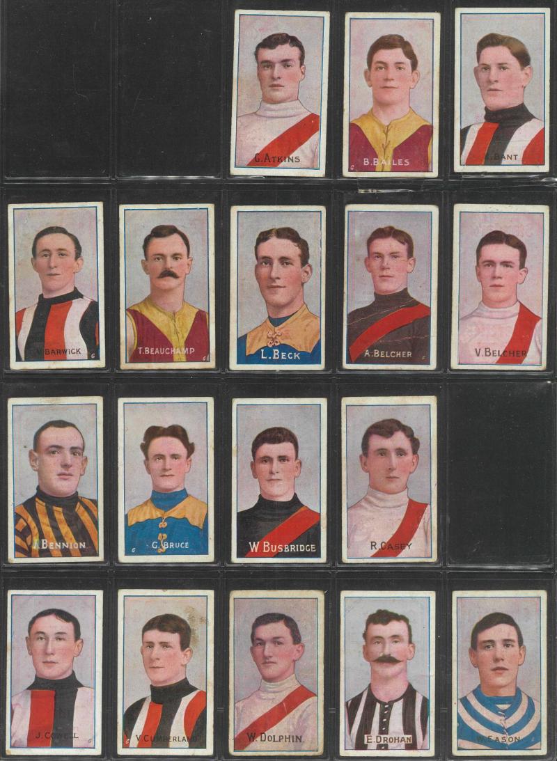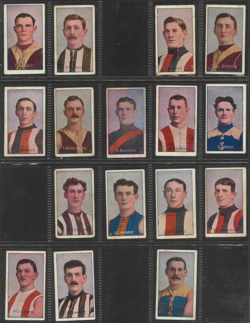 1908-09 Sniders & Abrahams 'Victorian Association Footballers' almost complete set [19/20] (including Footscray, Richmond & North