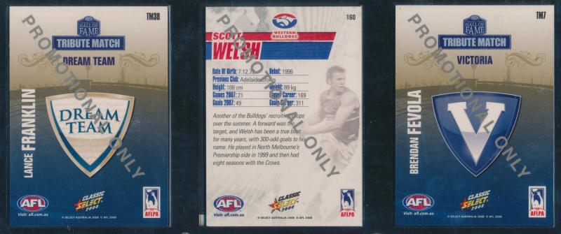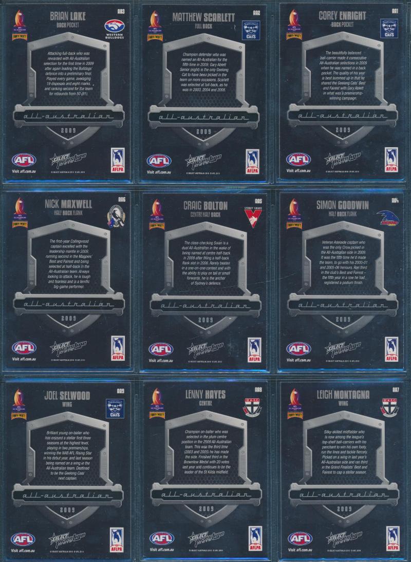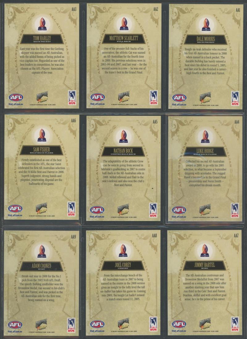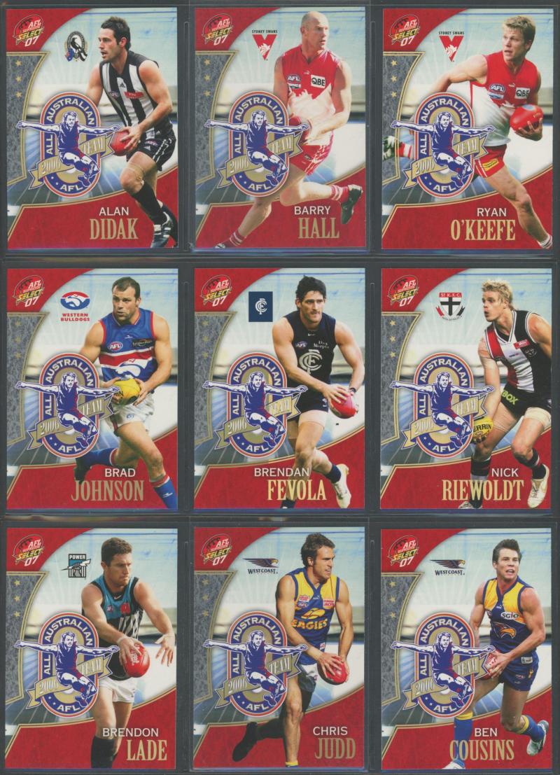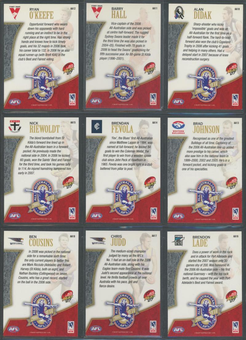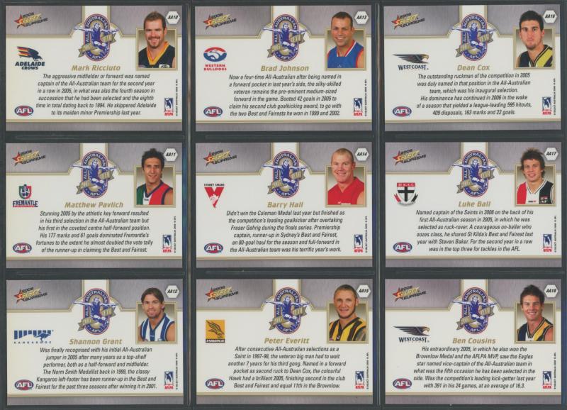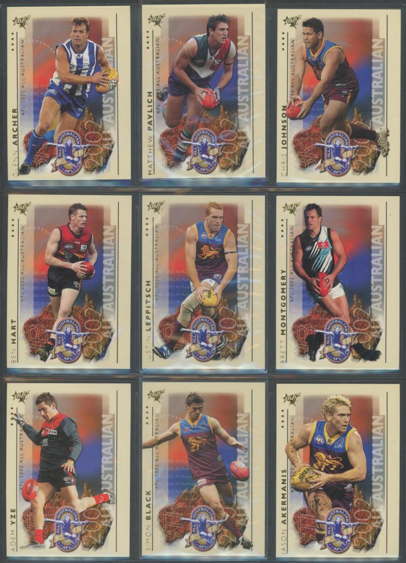 Select 'All Australian' [22]; 1998 Deetya 'Deadly Vibe' (indigenous players) [22]; 2001 Select 'All Australian' [22]; 2002 Select 'All Australian' [22] & 'Tribute Cards' [4], mainly fine/Very Fine.