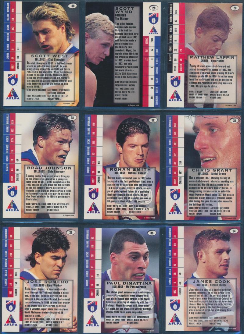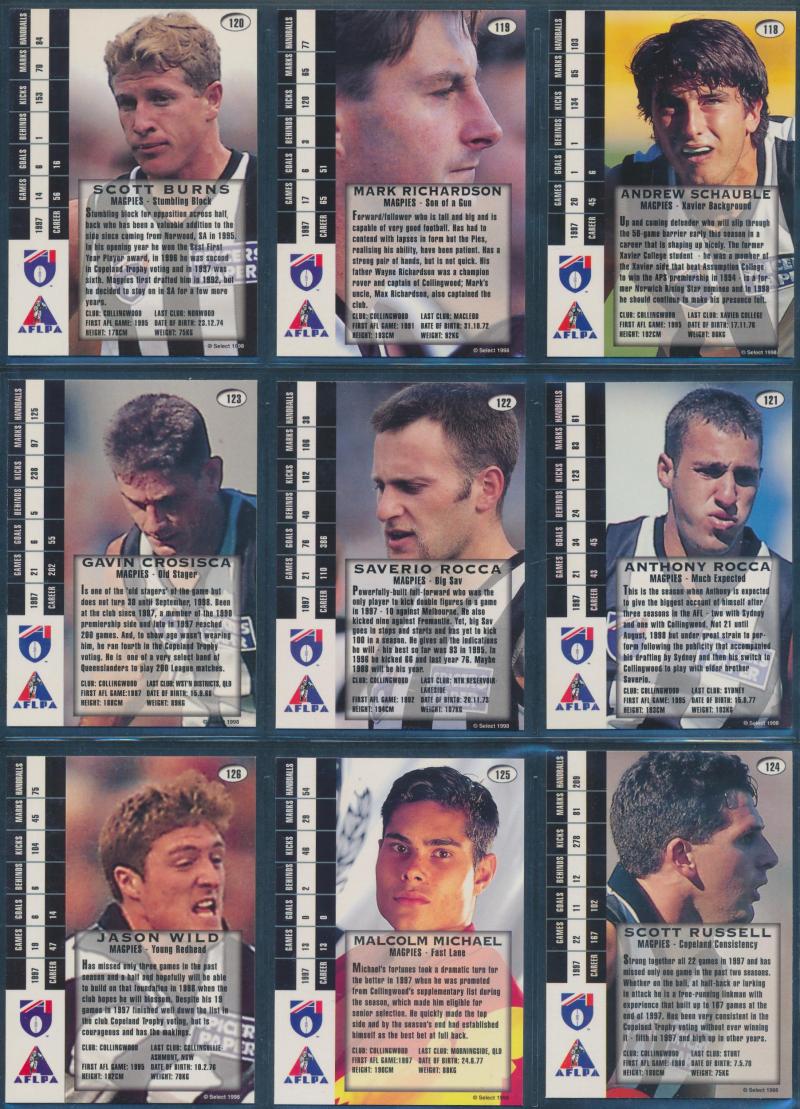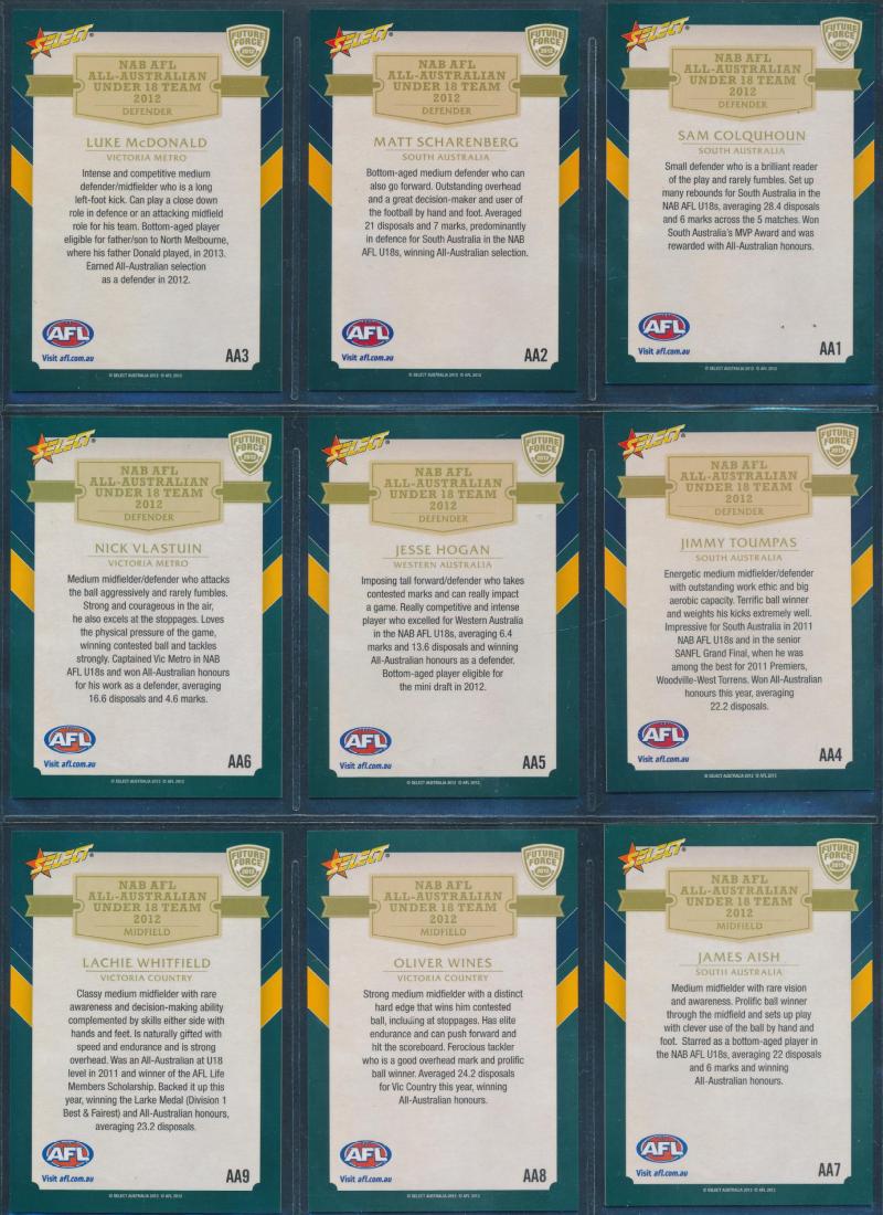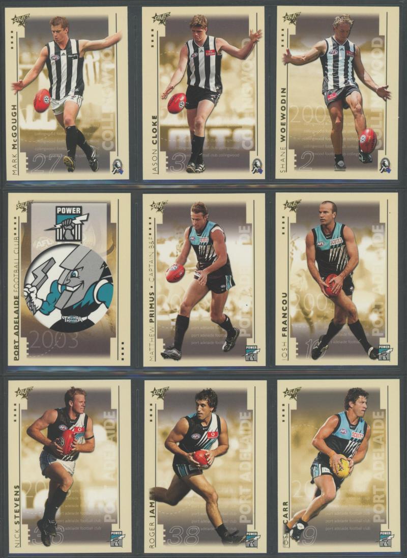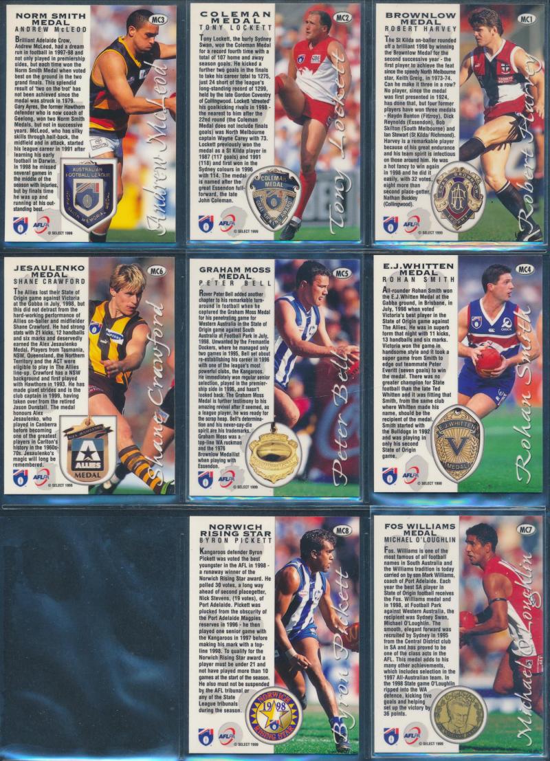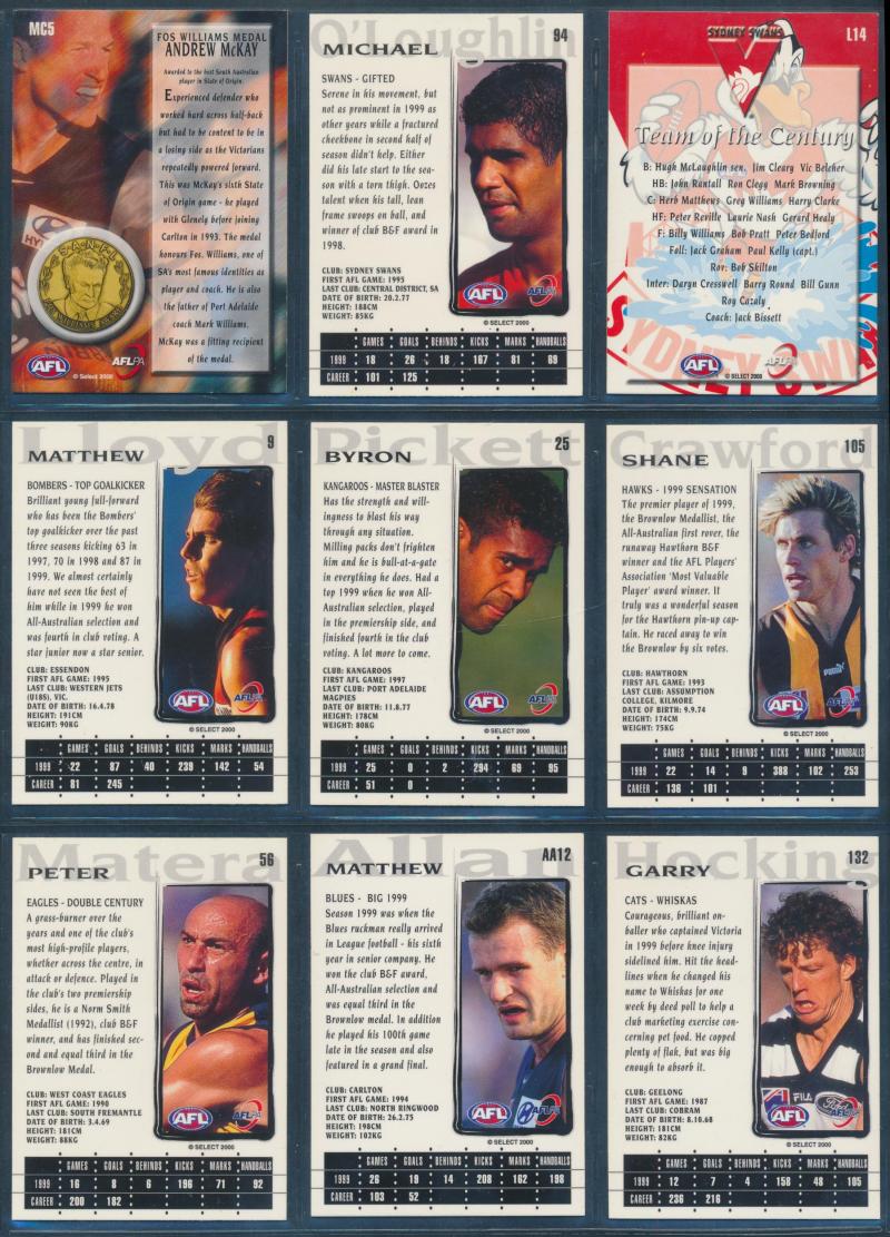 Select 'All Australian' [22]; 1998 Deetya 'Deadly Vibe' (indigenous players) [22]; 2001 Select 'All Australian' [22]; 2002 Select 'All Australian' [22] & 'Tribute Cards' [4], mainly fine/Very Fine.