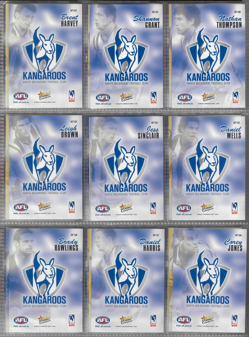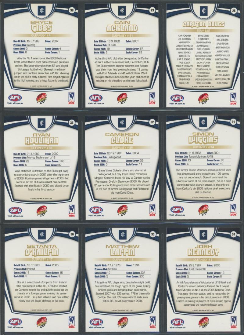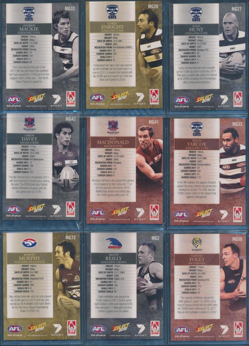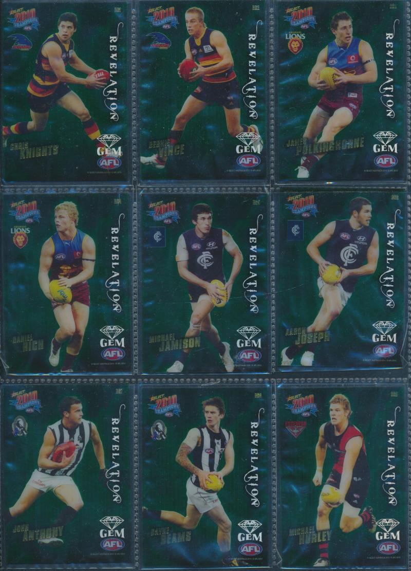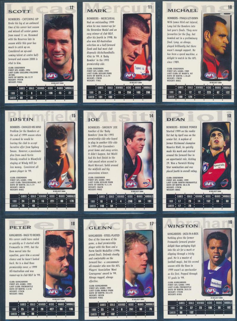 Captain Wild' [16]; 2005 Select 'All Australian' [22], 'Golden Draft' [16], 'Footy Face Die-Cuts' [195] & 'Footy Face Idols' [16]; 2006 Select 'All Australian' [22], 'Die-Cut Guernsey Cards' [96] & 'Lenticular New Generation' [20], mainly fine/Very