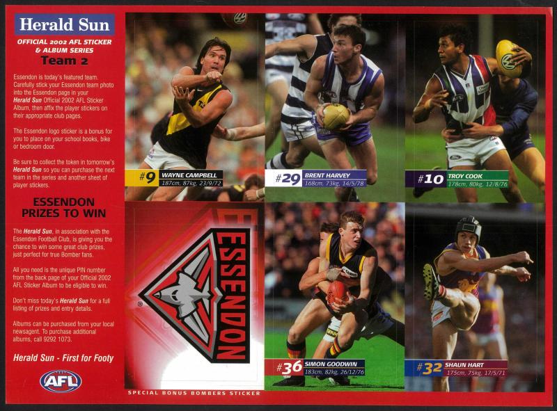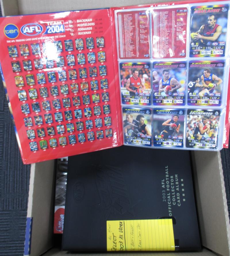 Collection 1998-2002 cards in 7 albums, noted 1998 Select 'All Australian' [22] & 'Tony Lockett 1300 Goal Kicking Record' [5]; 2000