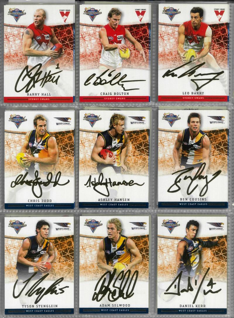 Signatures' [60/96] & 'Gem Cards' [16]; 2008 Topps 'Gold Chipz' [36]; 2009 Select 'All Australian' [22], mainly fine/Very Fine.