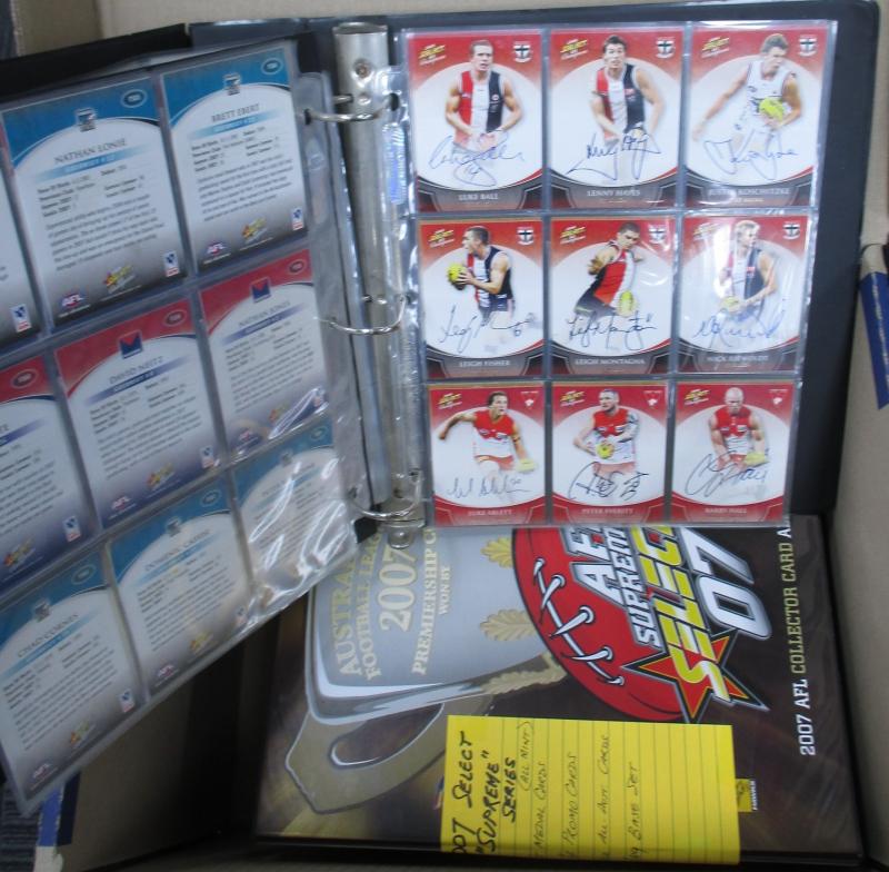 Collection 2007-2009 cards in 11 albums, noted 2007 Select 'All Australian' [22] & 'Gem Cards' [16]; 2008 Select 'Blue Foil