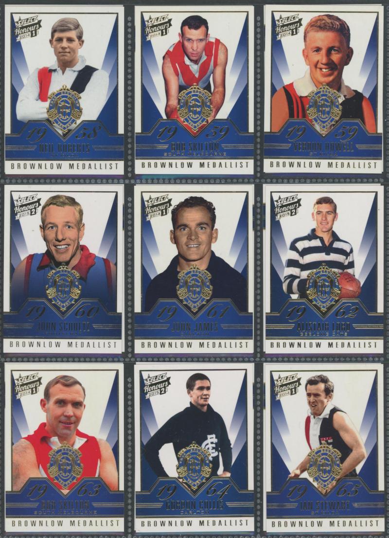 Collection 1993-2021 cards in 5 albums, noted 2014-15 Select 'Brownlow Gallery' [100]; 1994 Cazaly Gold signed Chris Waterman;