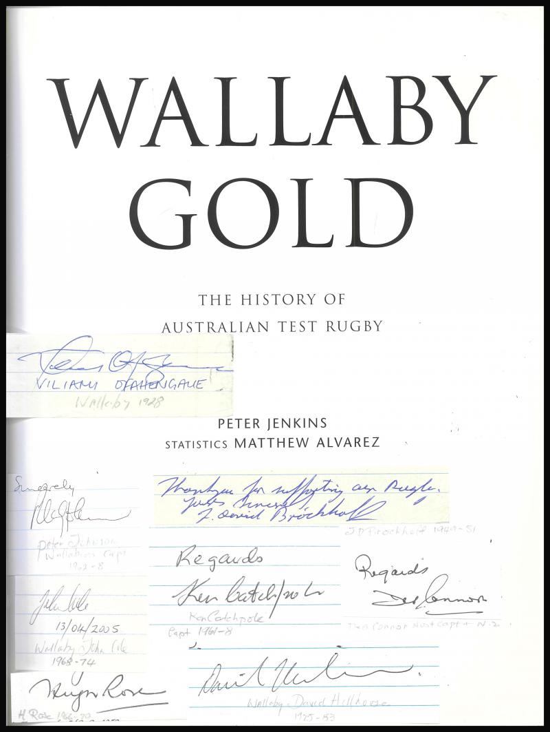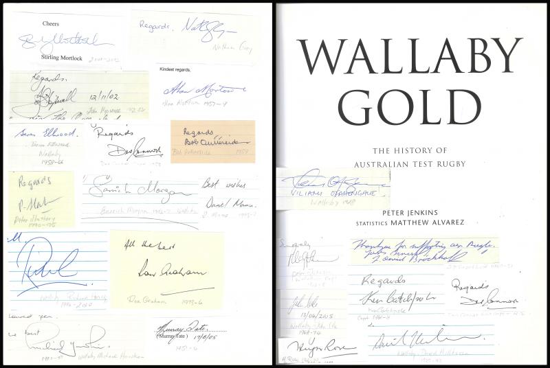 Autographs 'Wallaby Gold - The History of Australian Test Rugby' by Jenkins [Sydney, 2003] with 84 signatures, noted Sir Nicholas