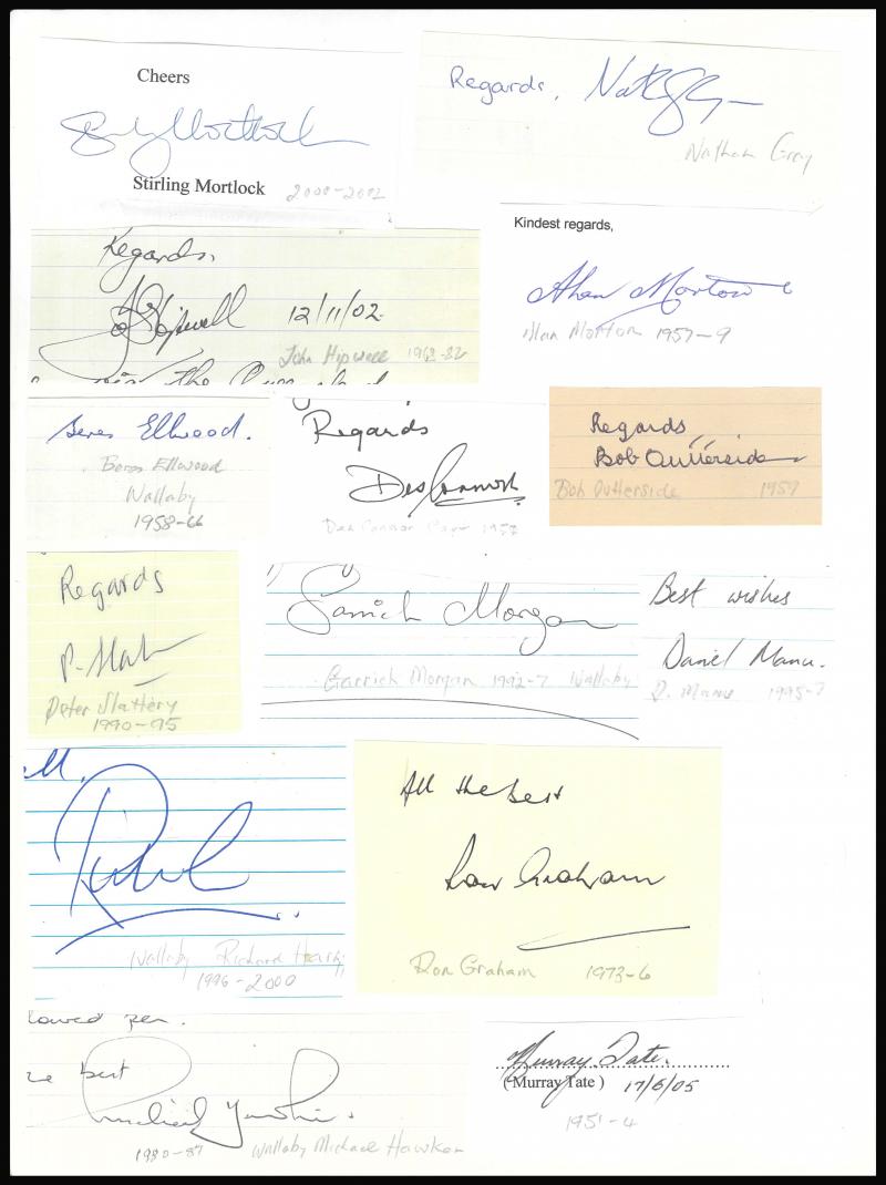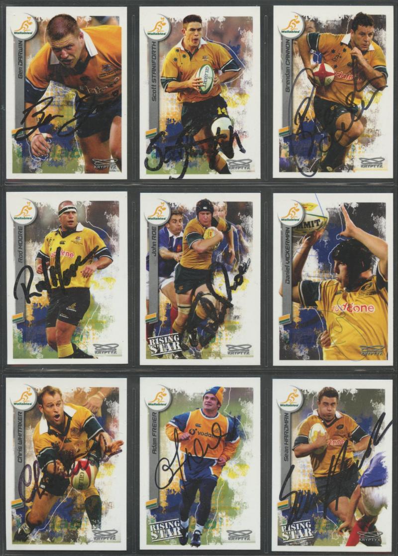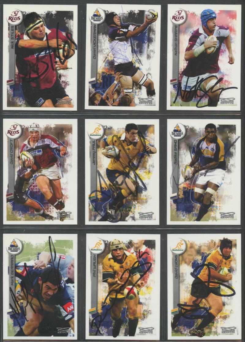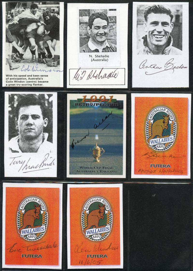 Autographs Collection of signed cards (117); names include Matthew Burke, George Gregan, Steve Kefu, Stephen Larkham, Chris Latham,