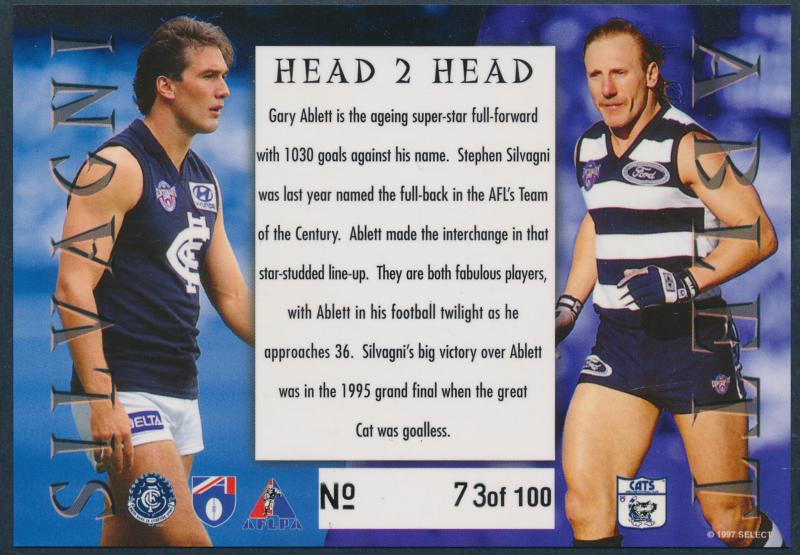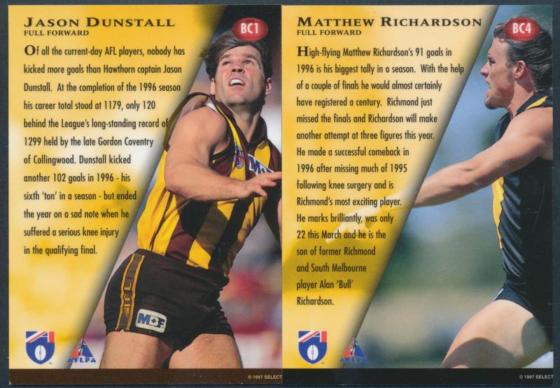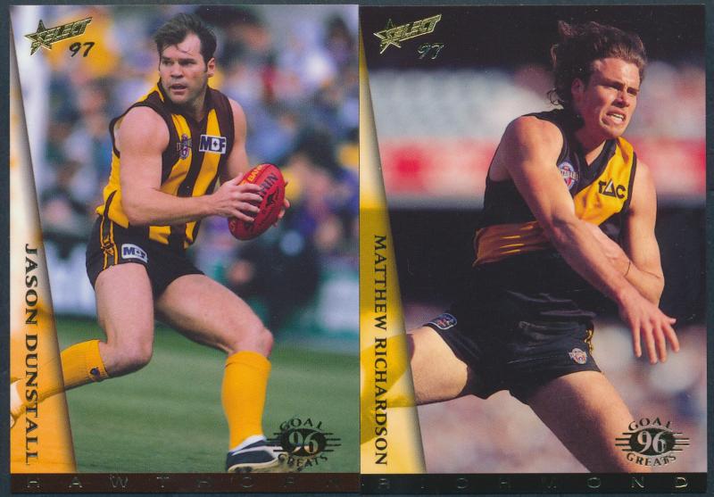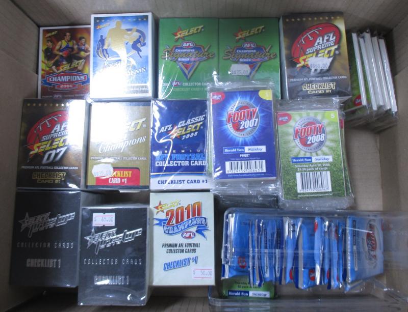 1997-1999 football cards including 1997 Select factory box, 'All Australian' [22], 'Head2Head' [12] x2, 'Medal Cards' [9] x2, 'Box