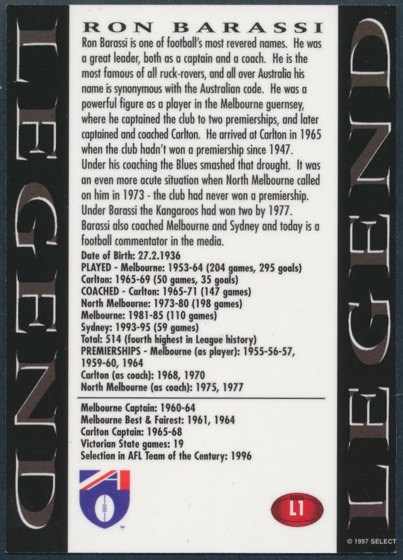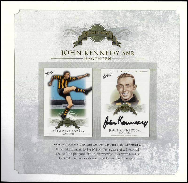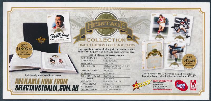 2011 Select 'Heritage Collection Series One', comprising signature cards & action cards for Sergio Silvagni, Lou Richards, Ken