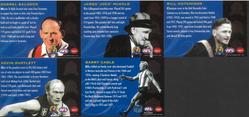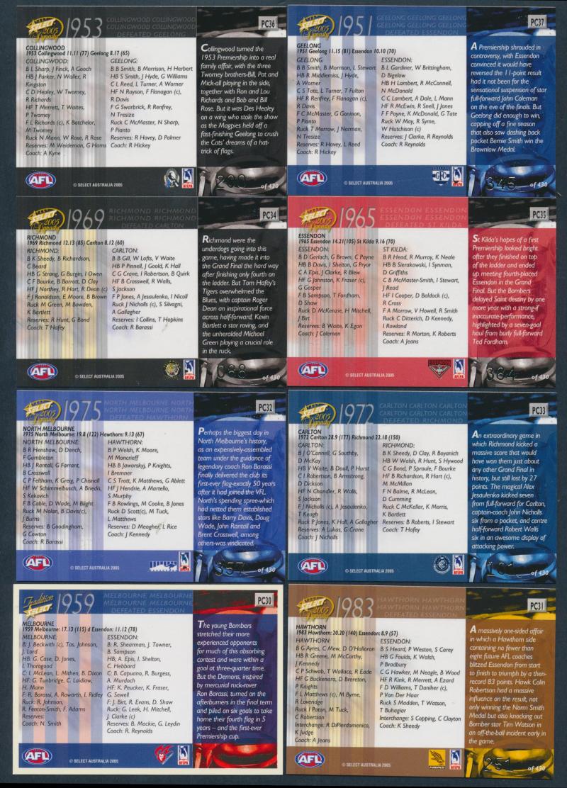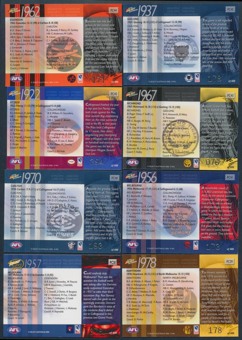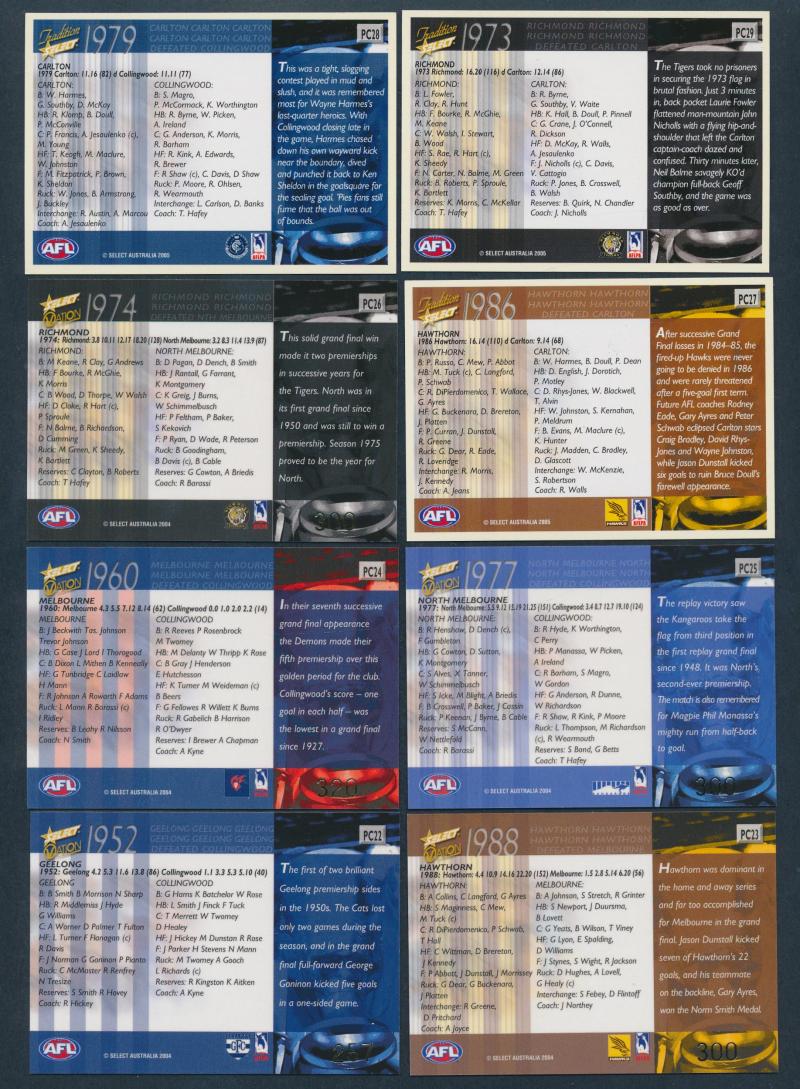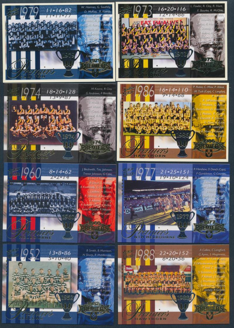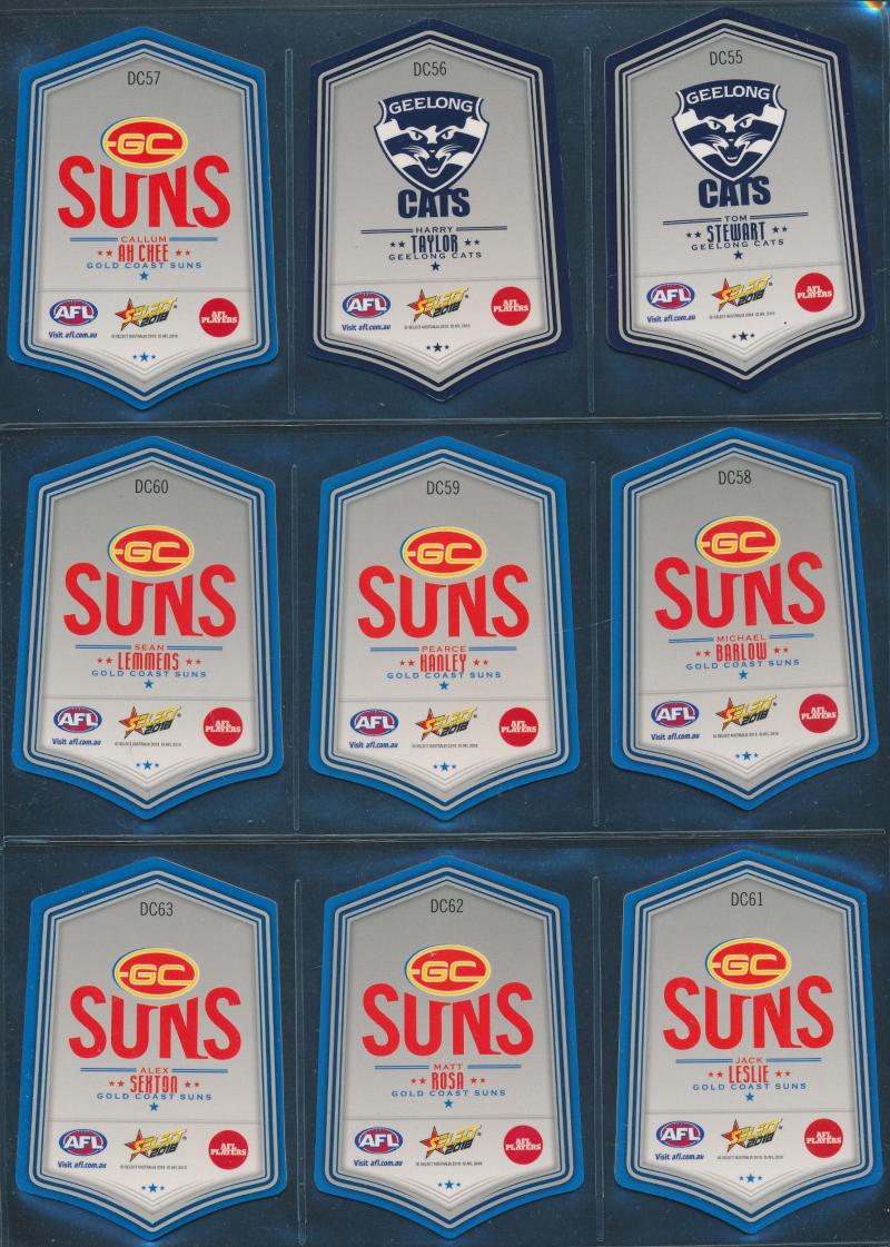 Champions, 2013 Champions, 2014 Champions, 2015 Champions, 2016 Footy Stars, 2017 Footy Stars, 2019 Footy Stars, 2019 Team Zone, 20120 Footy Stars, 2020 Team Zone, 2022 Footy Stars x2, 2024 Footy Stars, mainly Fine/Very Fine.