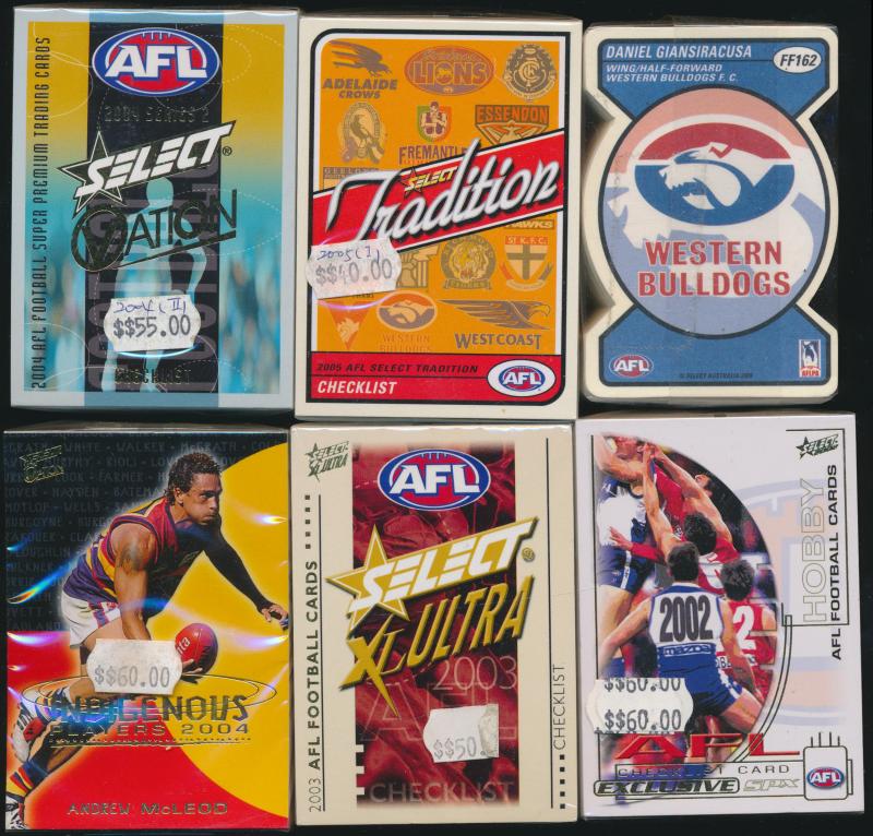 2000-05 collection including 2004 Select 'Indigenous Players' [44]; 2005 Tradition 'Footy Faces' [160]; Dynasty 'Footy Faces'