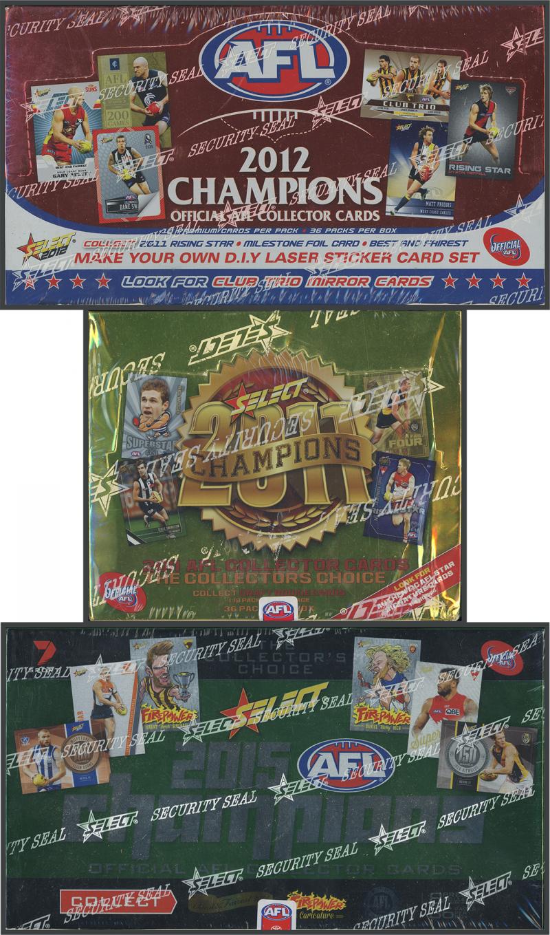 2011-24 collection including base sets, 2018 'Footy Stars Die Cuts' [144]; unoped factory boxes (14) - 2011 Champions, 2012