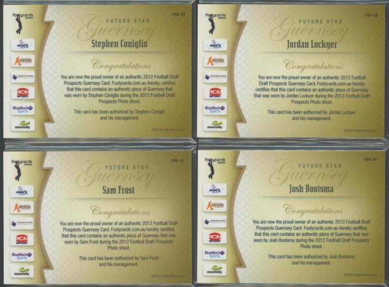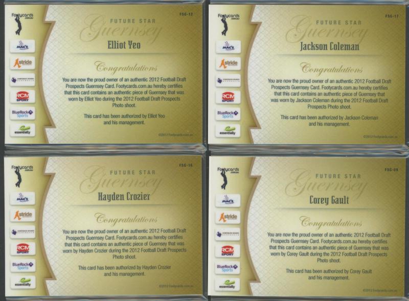 2012 Footycards 'Football Draft Prospects Guernsey Cards' almost complete set [35/36], all Player Edition, includes Lachie Neale,