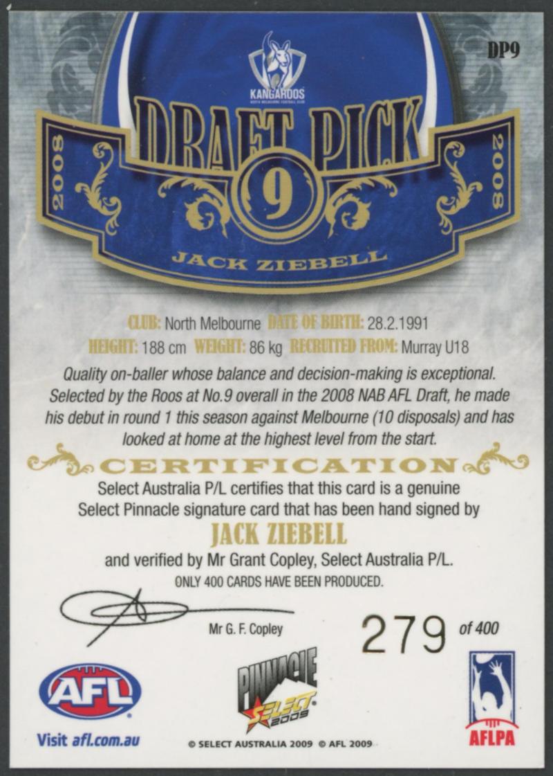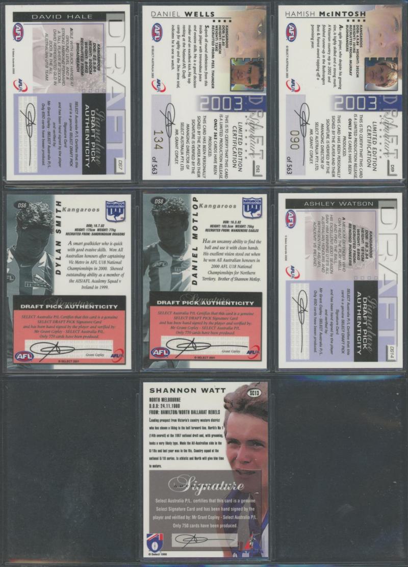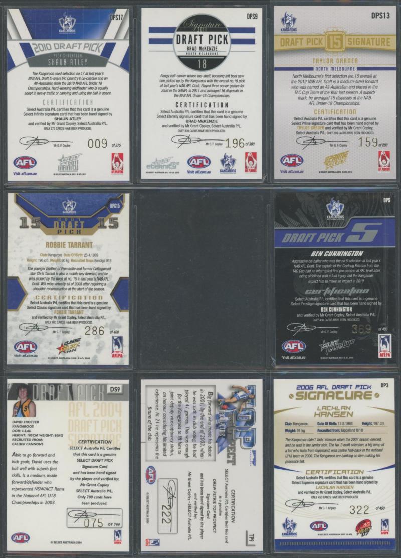1998-2013 North Melbourne Select 'Draft Signature Cards' including Drew Petrie, Jack Ziebell, Daniel Wells, Ben Cunnington, Shaun