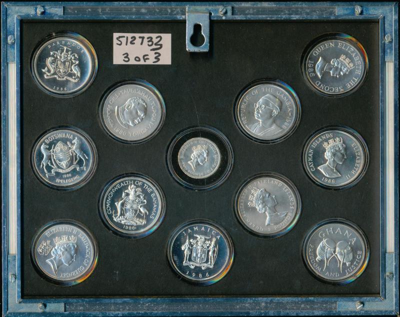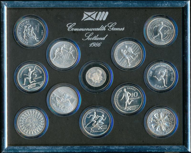 both sides can be viewed (some scratches on perspex); plus 1986 Commonwealth Games Scotland framed (260mm x 210mm) set of twelve coins from Commonwealth countries.