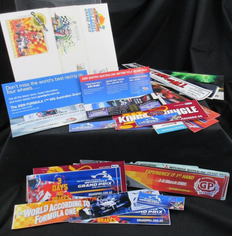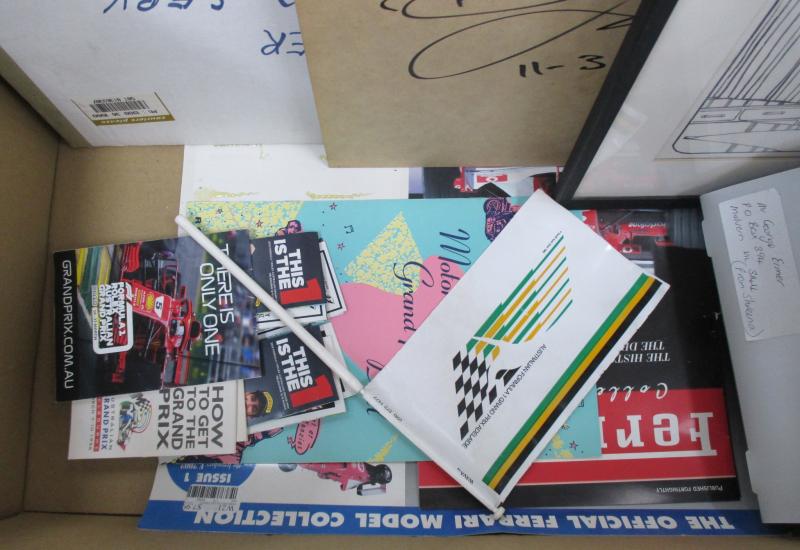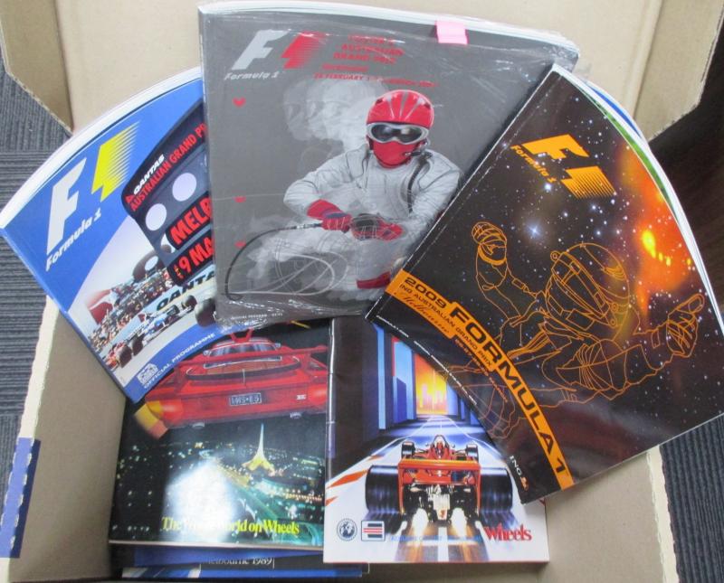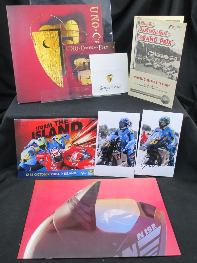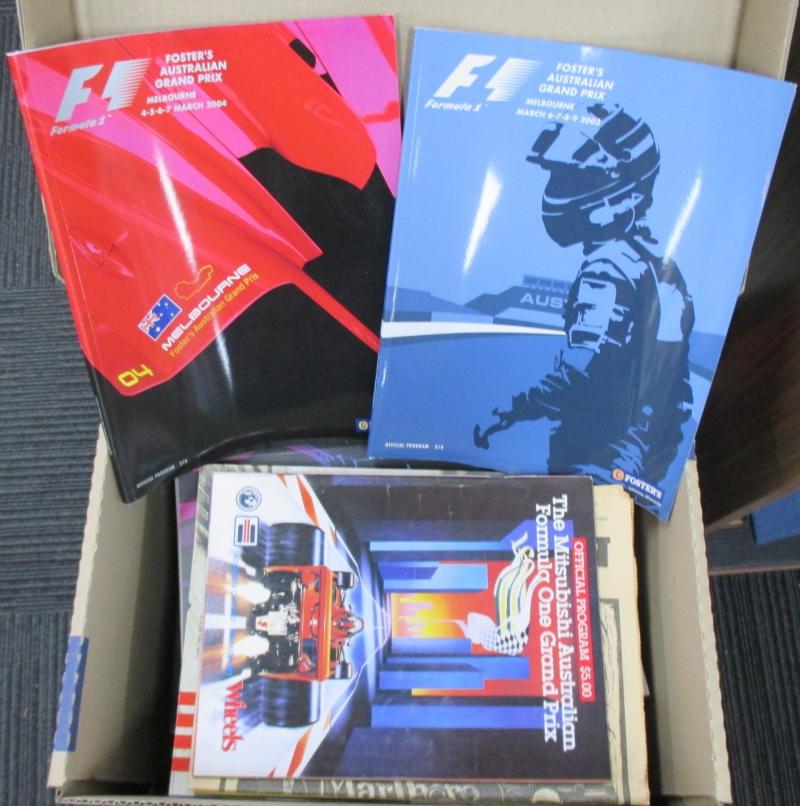 Motorcycle Grand Prix (3), Indy 300 (4) one signed Anna Bligh; Nascar 500; Melbourne International Motor Show (6); Albert Park Motorfest (2); Official Grand Prix Auction (6); other auction catalogues (12); magazines (4), mainly Fine.