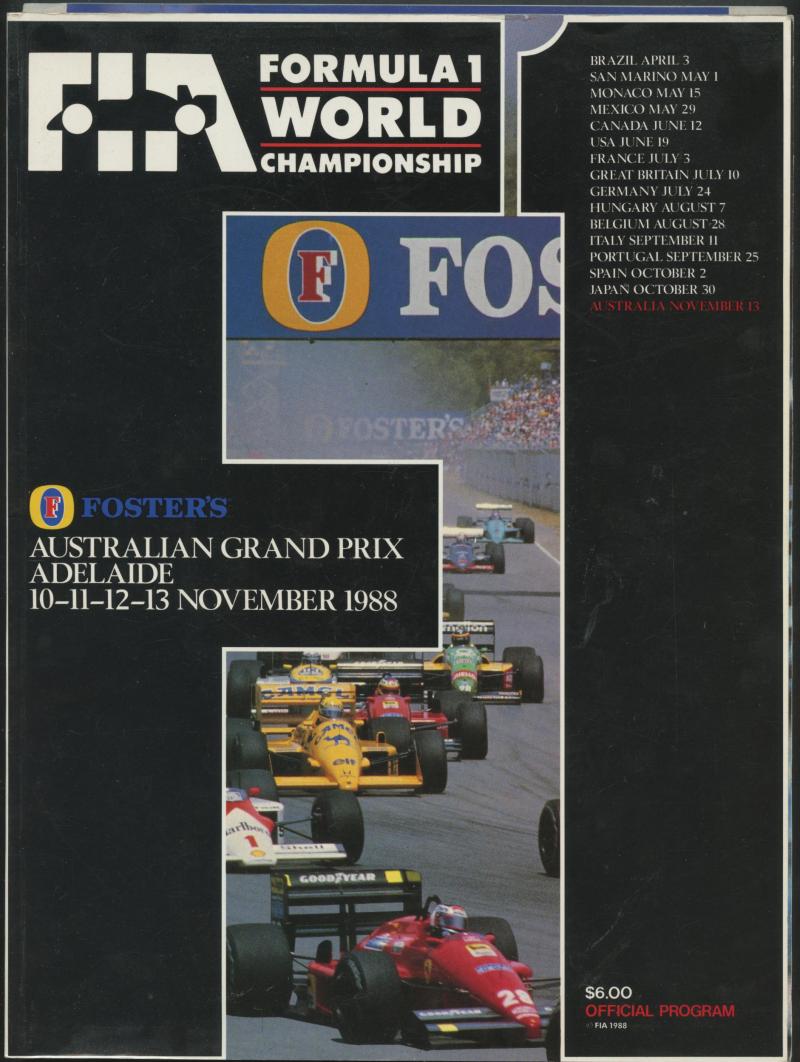 Australian F1 Grand Prix programmes Fairly complete collection comprising Adelaide 1985-1988; Melbourne 1996-2014, 2016-2020 &