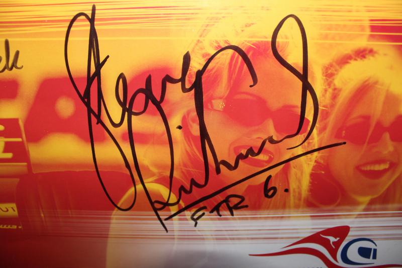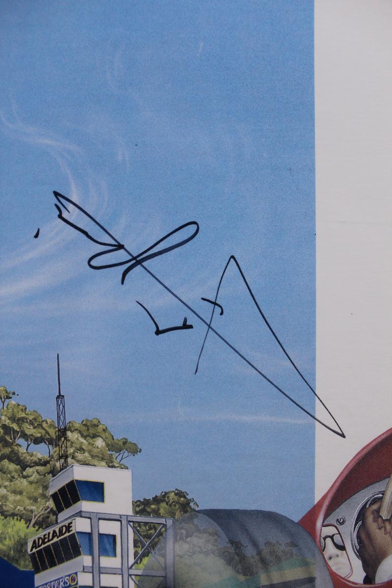 glazed, overall 69x101cm, Fine condition. With a letter of authenticity on reverse. Scarce - Bernie Ecclestone did not sign many items.