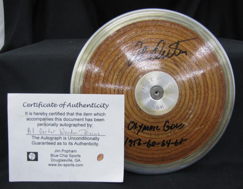 AL OERTER Discus signed in black texta 'Al Oerter, Olympic Gold, 1956-60-64-68', Fine condition. With CoA. (Image1) (Image2)