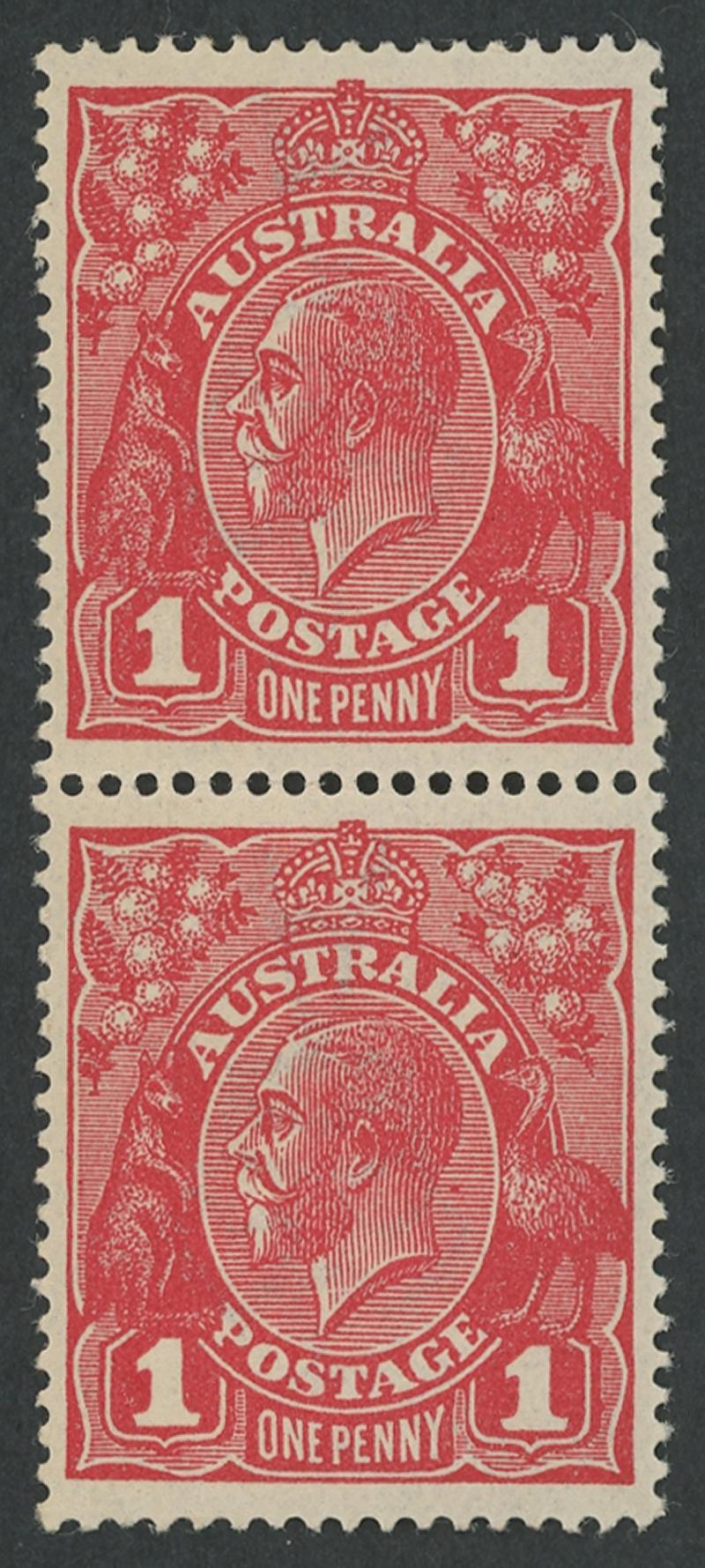 1d red Die III with the Watermark Inverted ACSC 75a (SG 53w) vertical pair, exceptional centring, unmounted, Cat $1150+ (£320+ for