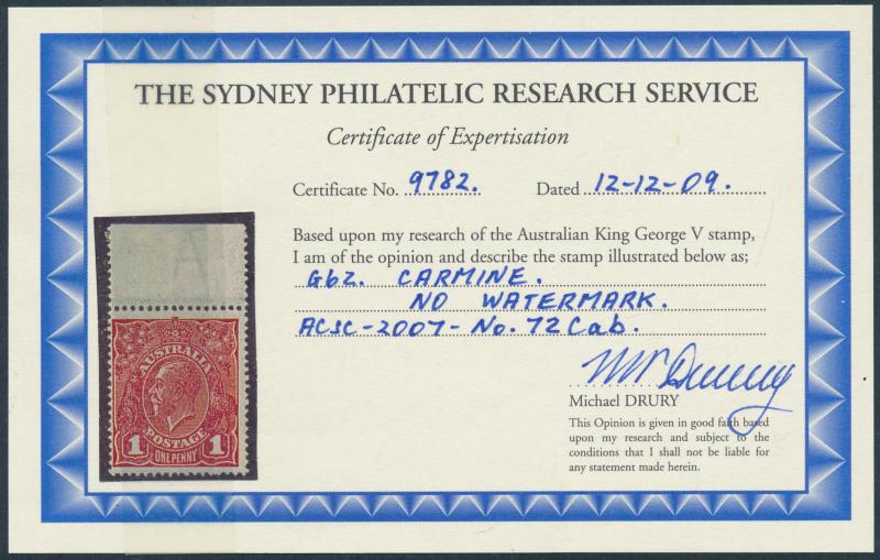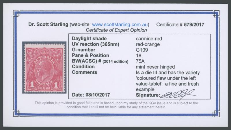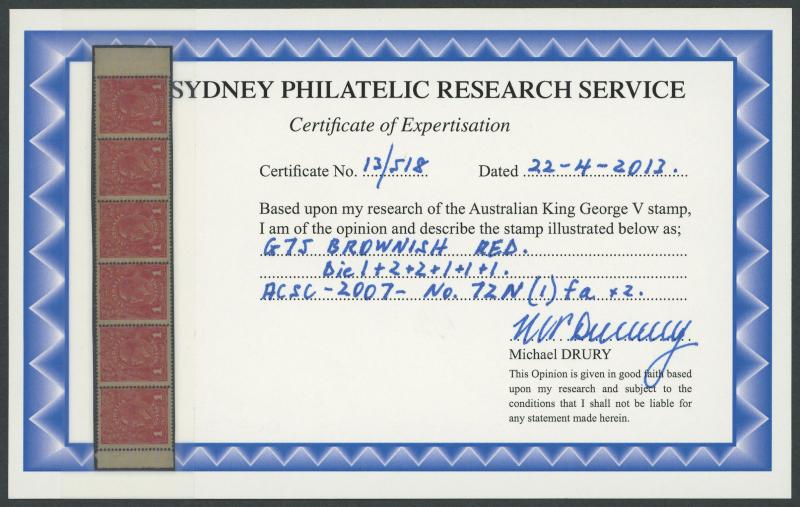 the variety, Cat $500. Michael Drury Certificate (2016). Ex Gerald Fon. (Image1) (Image2)