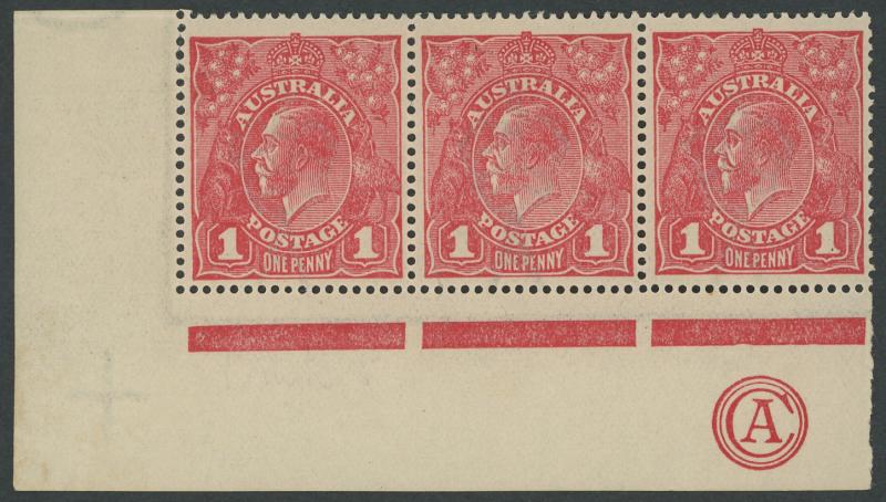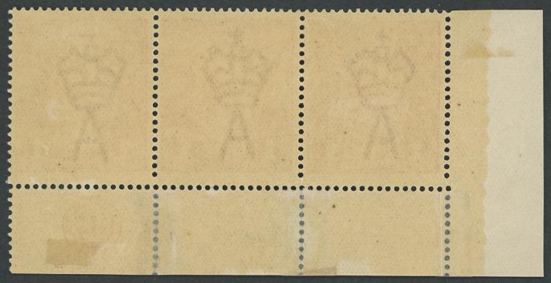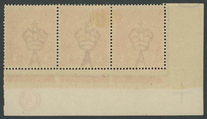 variety unit and three others unmounted, Cat $5000+ for the monogram strip & variety mounted, three mounted & three unmounted singles. Ex Graeme Stephensen. (Image1) (Image2)