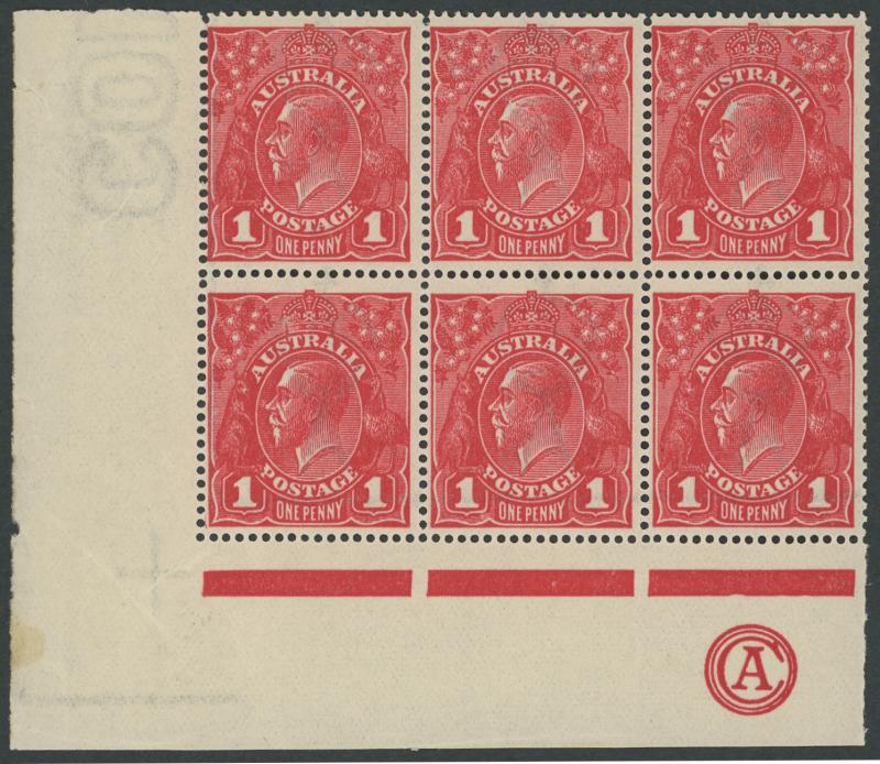 1d dull red G72 Rough Paper ACSC 72M (SG 47 shade variant) Plate 2 block of 20 (4x5) from the right pane including Substituted