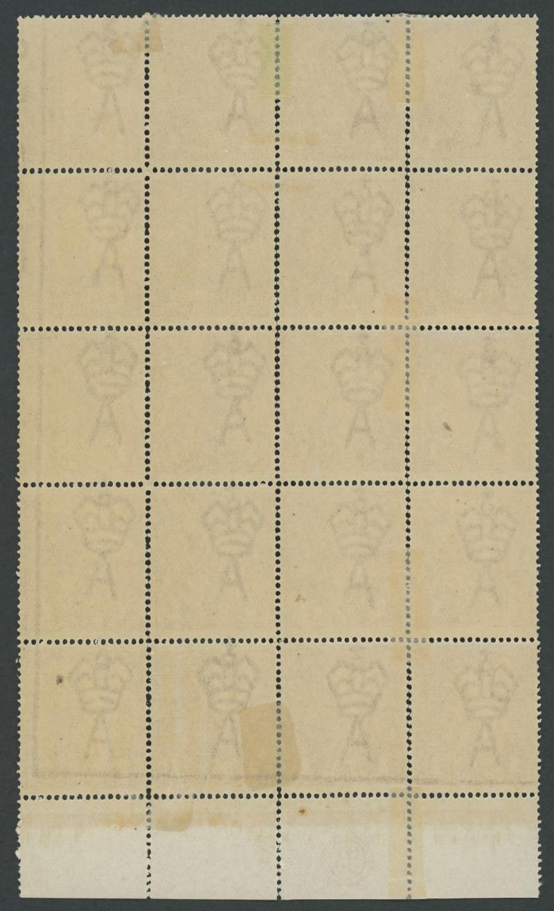 IV/58] at base ACSC 72(2)l, m, n & zc, a number of units well-centred including the monogram unit, the lower-right unit with a small mark (paper inclusion?), 14 units with neat perf reinforcing, the other 6 units including Pregnant 'Y' are unmounted,