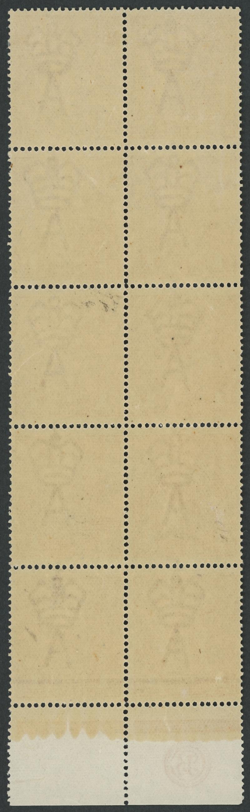 1d brownish-red G75 Rough Paper ACSC 72N (SG 47 shade variant) Plate 2 marginal block of 10 (2x5) from the right pane, the two