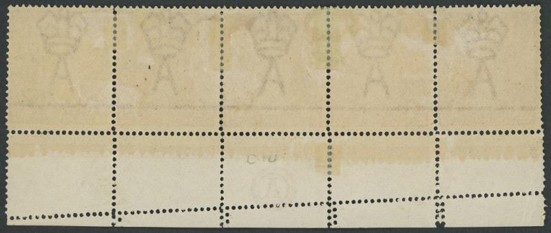1d brownish-red ACSC 72N (G75) Rough Paper Comb Perf Plate 1 horizontal strip of 6 with margins at both sides including Die I / Die