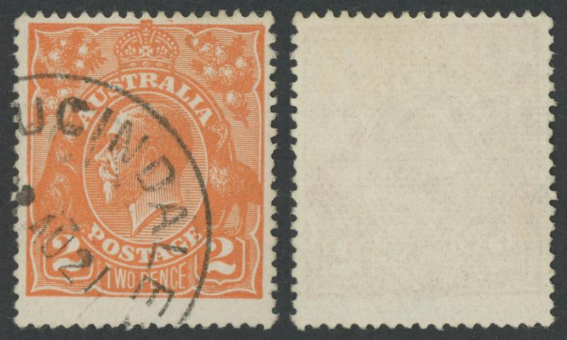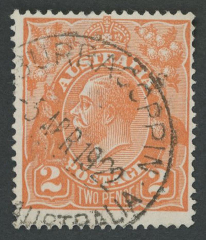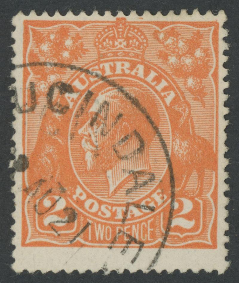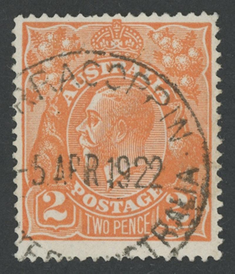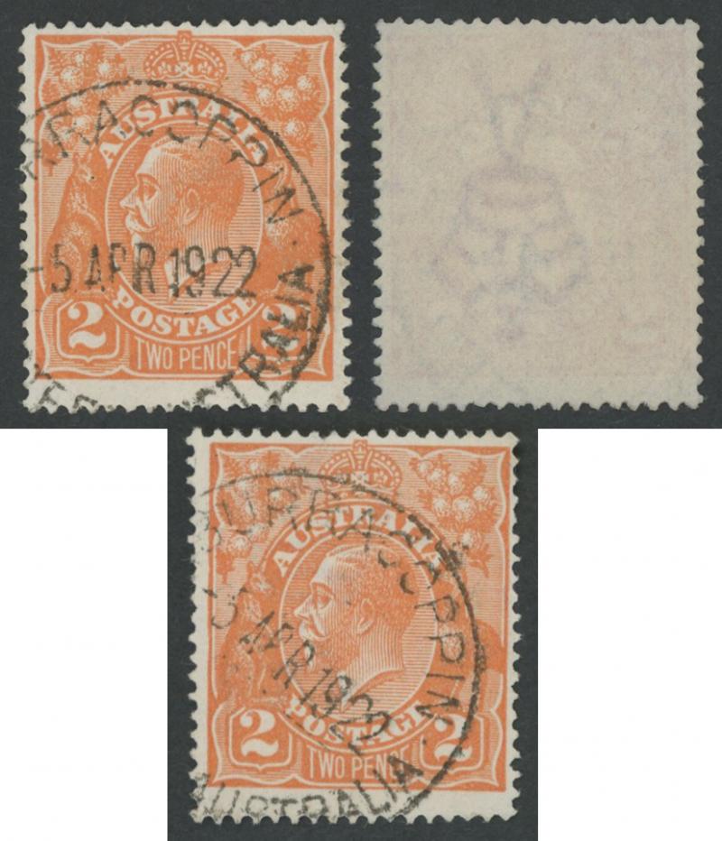 2d orange with the Watermark Inverted ACSC 95a (SG 62w), one nibbled perf at the top, large-part 'BU]RRACOPIN/-5APR1922/[WES]TERN