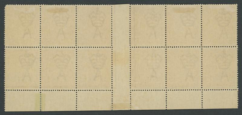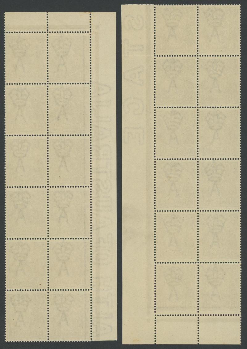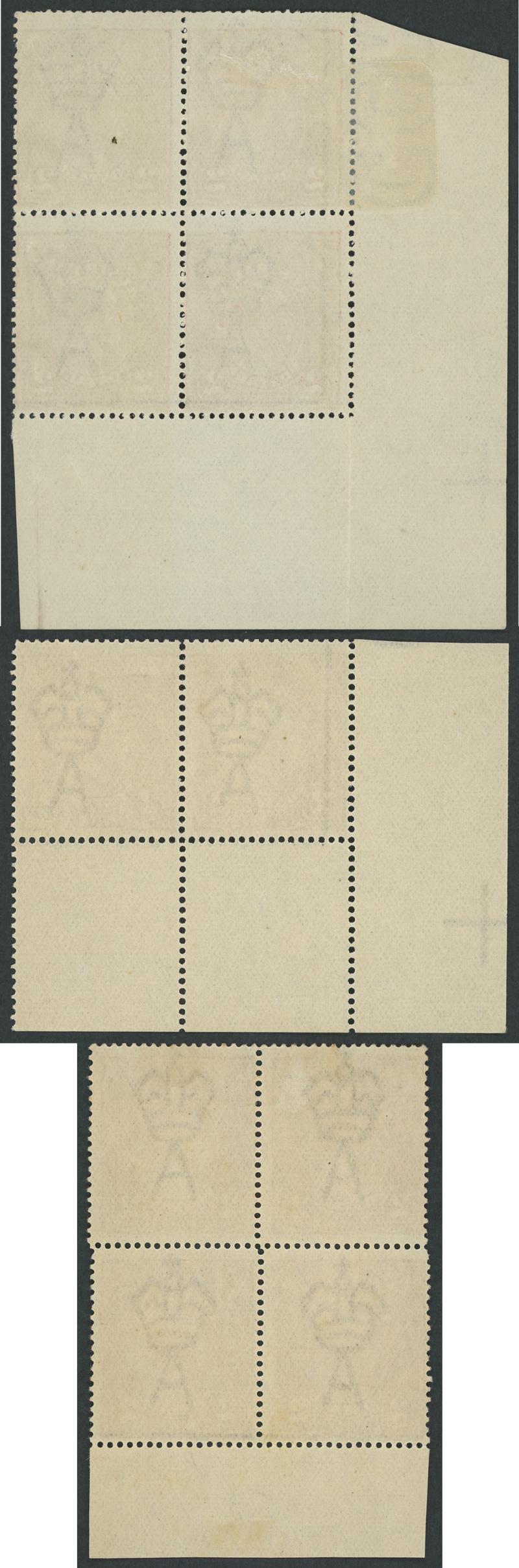 to Crown [Pos 12AR54] ACSC 96(12A)j, well-centred, the upper units lightly mounted, the lower units unmounted, Cat $2000+ for variety only. Arthur Gray's single - regummed - sold at our auction of 30.10.2015 for $452 (Sale 207 Lot 189). Ex Gerald