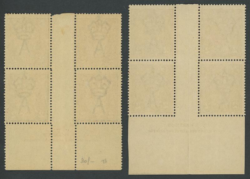 pair with White Spot on Lowest Leaf in Left Wattles and Dot Inside 'C' of 'PENCE' [plated as Pos 1L3/9] (unmounted), fine to very fine lightly mounted or with small hinge remainders except as noted, Cat $1135+ for the varieties or normal stamps in