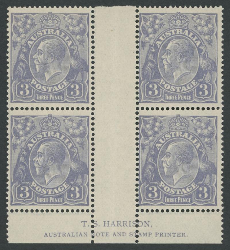 [Pos 14L12] ACSC 96(14)e, lightly mounted in the margin only, the stamps unmounted, Cat $3000+ for the variety mounted. Arthur Gray's similar example - in a mounted block of 4 - sold at our auction of 30.10.2015 for $1785 (Sale 207 Lot 190). Ex