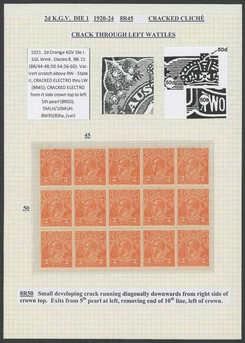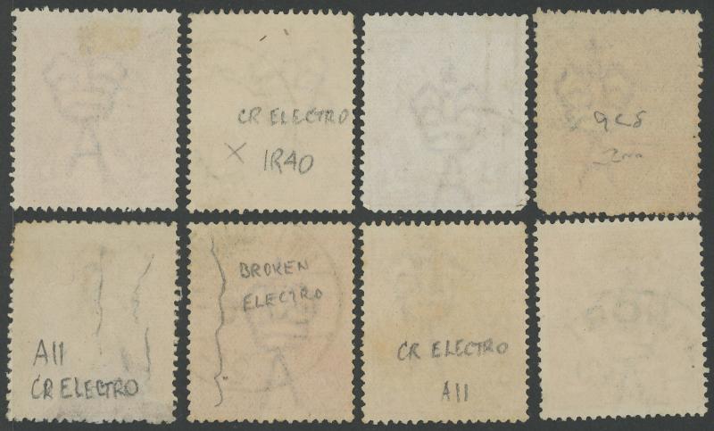 8R45] ACSC 95(8)ha plus unlisted Cracked Electro from Top of Crown diagonally through Last Pearl at Lower-Left [Pos 8R50], the upper units lightly mounted, the others unmounted, Cat $1180+ for the listed variety plus four mounted & ten unmounted