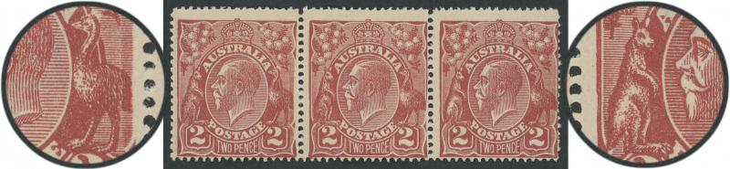 2d brown SG 78 Electro 16 horizontal strip of 3 from the bottom row of the sheet, the right-hand unit with White Kangaroo [Pos