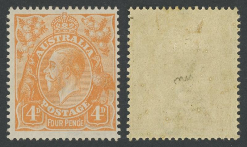 4d orange with the Watermark Inverted ACSC 110a (SG 22w), well-centred, unmounted, Cat $250 (£50+ for mounted). Ex Gerald Fon. (Image1) (Image2)