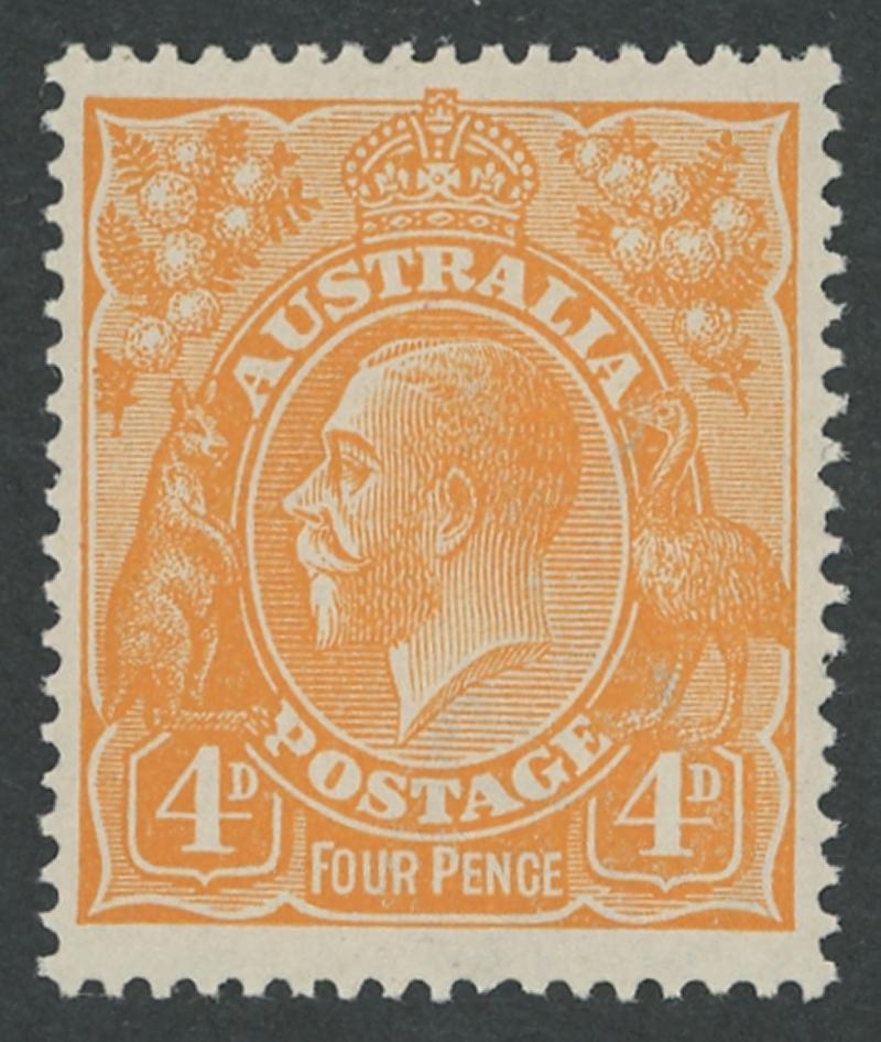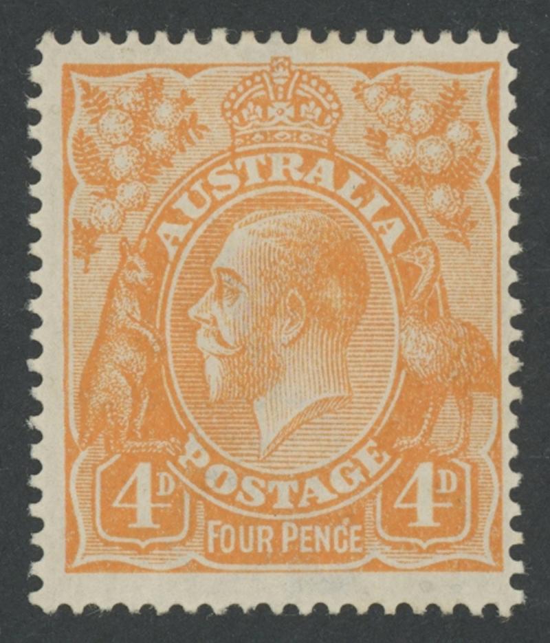 4d buff-orange with the Watermark Inverted ACSC 110Fa (SG 22w shade variant), quite well-centred, tiny hinge remainder, Cat $225+