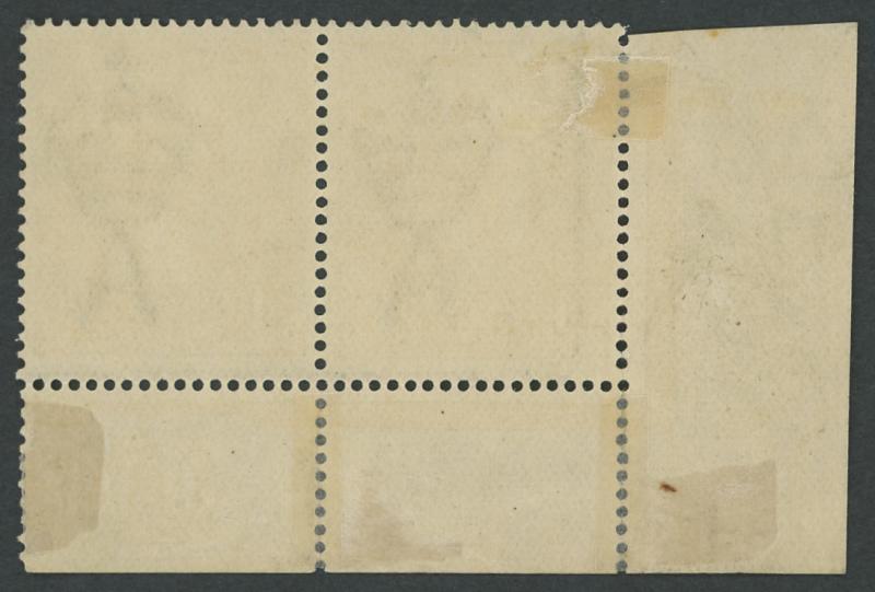 upper-right unit with a couple of slightly uneven perfs & minor perf reinforcing, the others lightly mounted or minor gum disturbance, Cat $9500. Arthur Gray's similar block sold at our auction of 30.10.2015 for $7735 (Sale 207 Lot 207). Ex Julian