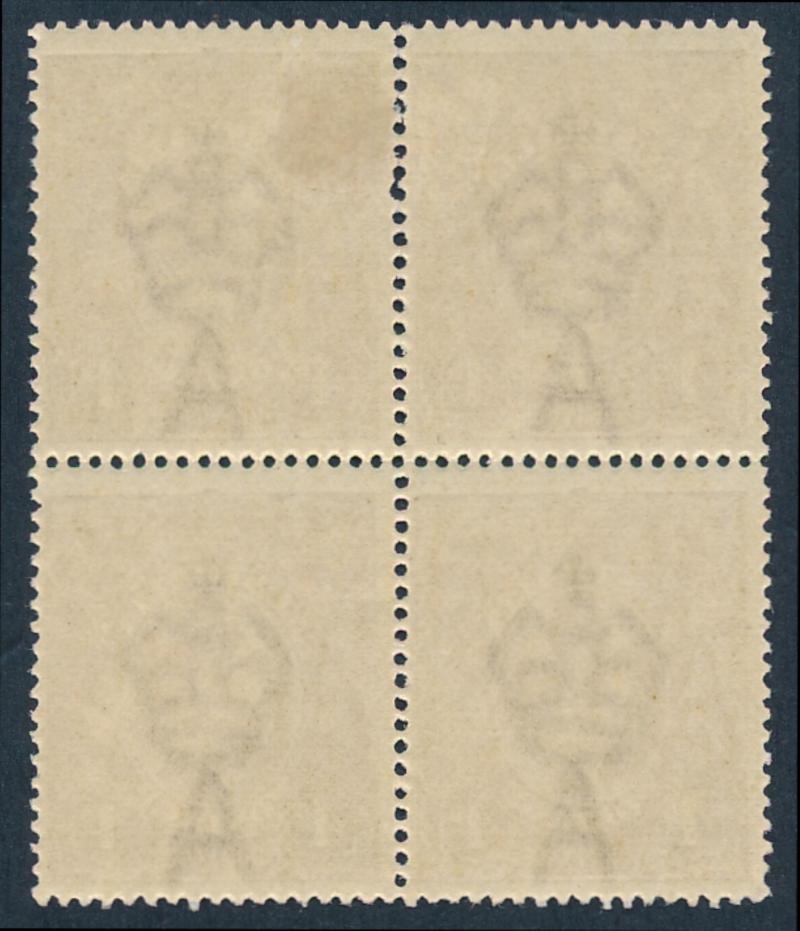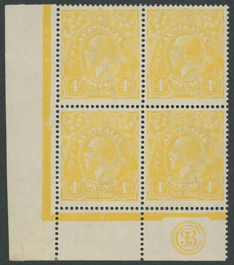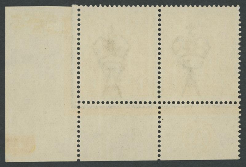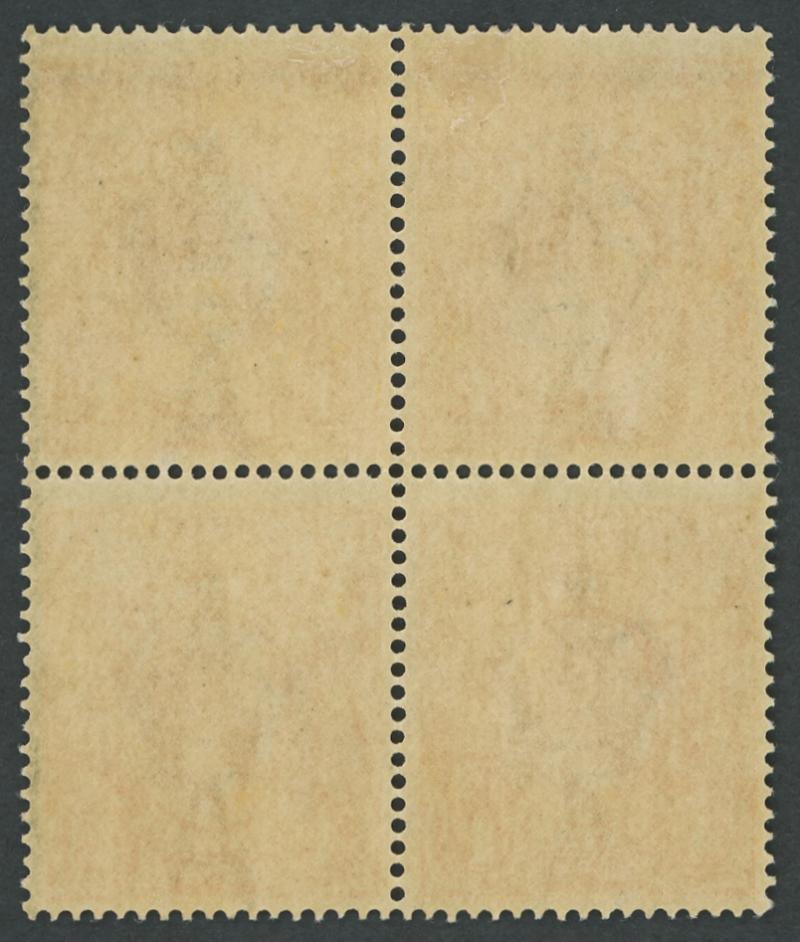 ACSC 110C(1)z in a block of 4, lightly mounted in the margins only, the stamps all unmounted, Cat $1500+ for a monogram pair mounted in the normal 'orange' shade plus a significant premium for the scarce shade or $3600+ for four unmounted