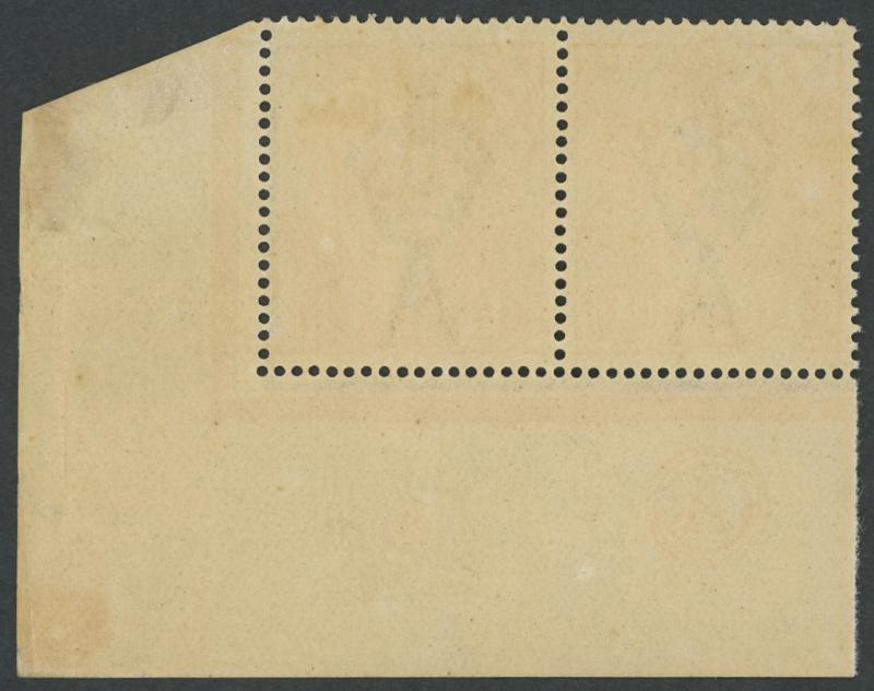 monogram unit] ACSC 110D(1)z, hinge remainders/perf reinforcing in the lower margin and on the left-hand unit, the monogram unit unmounted, Cat $1500+ for a mounted monogram pair in the normal 'orange' shade plus a significant premium for the scarce